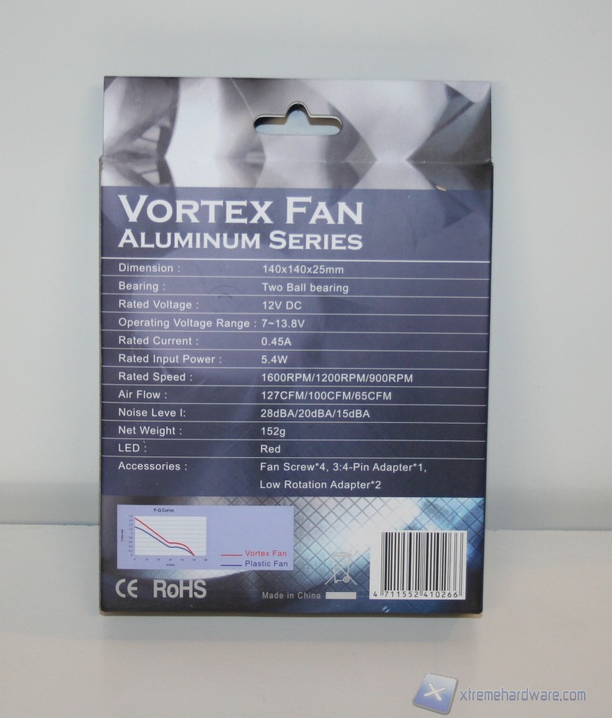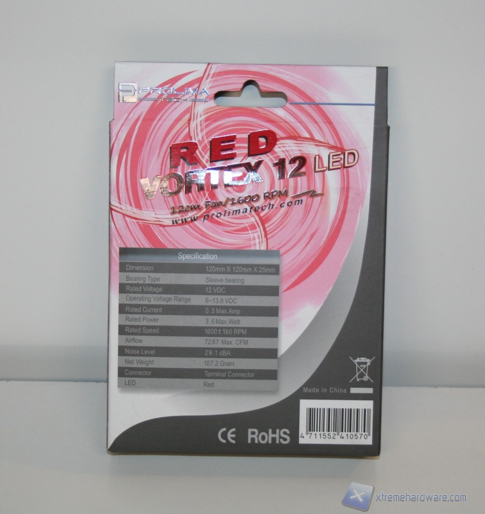 Come già fatto presente Prolimatech non fornisce nessuna ventola in dotazione; abbiamo utilizzato un modello molto particolare, la Prolimatech Aluminum da 140mm, oltre a due Prolimatech Bluevortex da 120mm LED rossi e blu! Riportiamo i dati effettivi di rotazione, ricordiamo inoltre che sono sensibili ad una variazione del 10%.