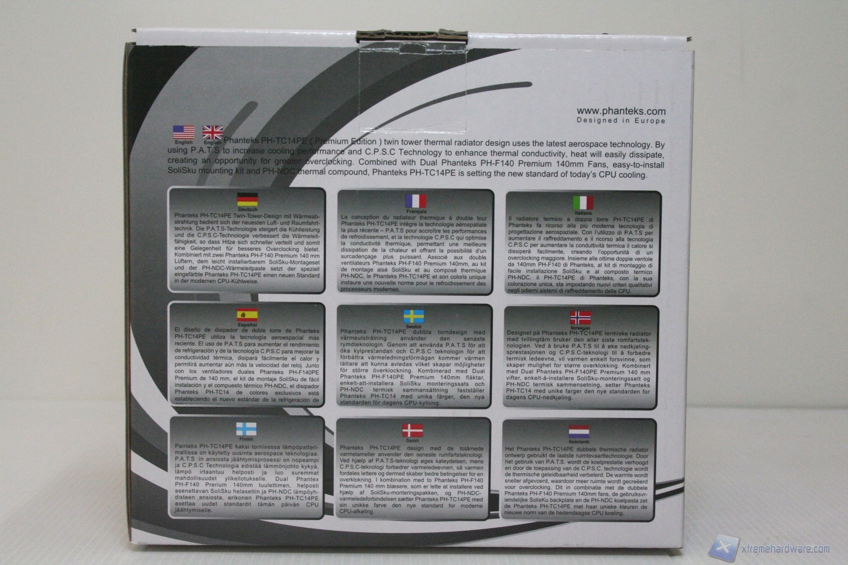 Il dissipatore è inserito in un ottimo confezionamento con sfondo bianco/nero e finitura lucida ed è veramente notevole il numero di informazioni riportate sulla confezione esterna. E’ apprezzabile nella parte posteriore la presenza di una descrizione in nove lingue, tra cui l’italiano. Nella parte sinistra, invece, sono presenti le features caratteristiche del modello, corredate da ottime immagini illustrative. Una volta aperta la scatola, il dissipatore è correttamente imballato e non ci saranno problemi all’atto del trasporto, complice l’eccellente imballaggio in fustellati di polietilene.