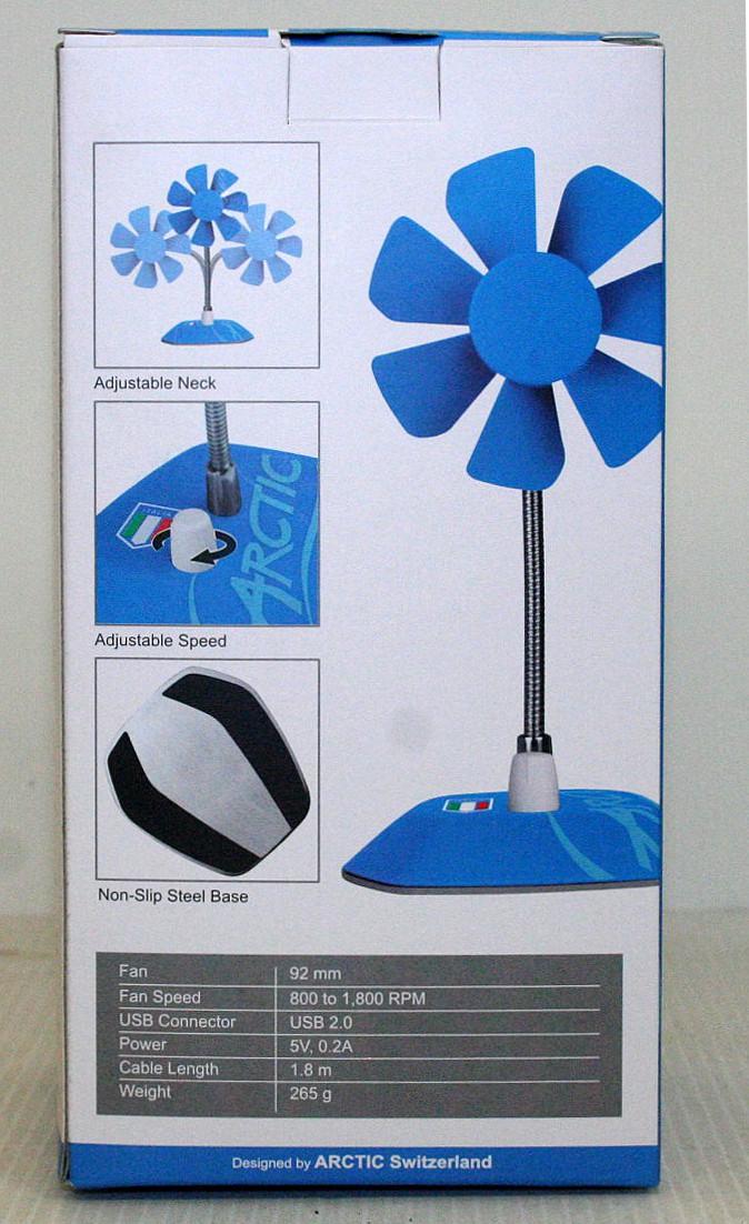 Come si evince dalle fotografie non è presente nessuna protezione alle pale di ventilazione, ma state tranquilli poiché non ci sarà nessun problema per quanto riguarda eventuali incidenti: il motore, appena si inserisce un elemento di resistenza tra le pale, blocca immediatamente il movimento delle stesse. Oltretutto le pale non sono taglienti, non hanno profili appuntiti e sono robuste il giusto da non comportare danni strutturali in caso di contatto con le dita. Si puo’ tranquillamente bloccare la ventola con la mano al massimo della velocità, impugnandola letteralmente; detto ciò, non consigliamo di utilizzarla come elemento di gioco per i nostri amici felini, che sicuramente troverebbero grande giovamento da questo nuovo gingillo sul tavolo di lavoro della propria abitazione. Evitiamo..