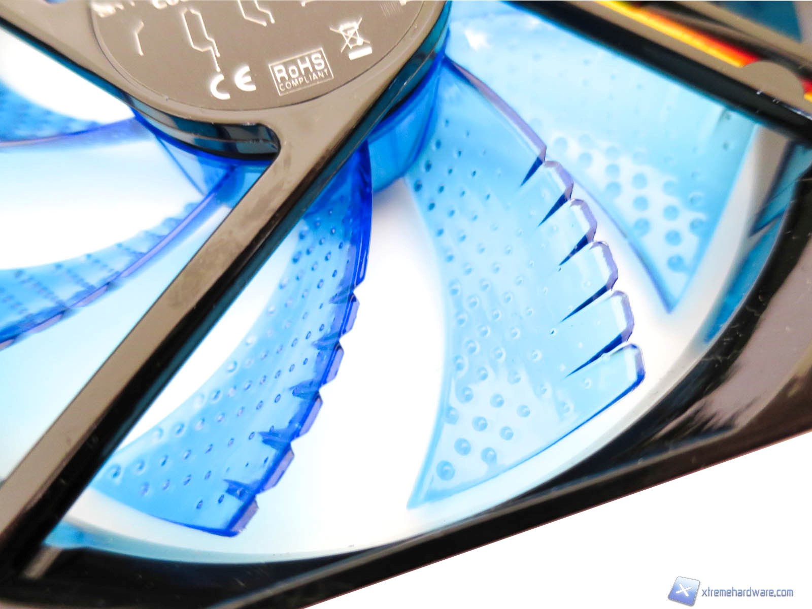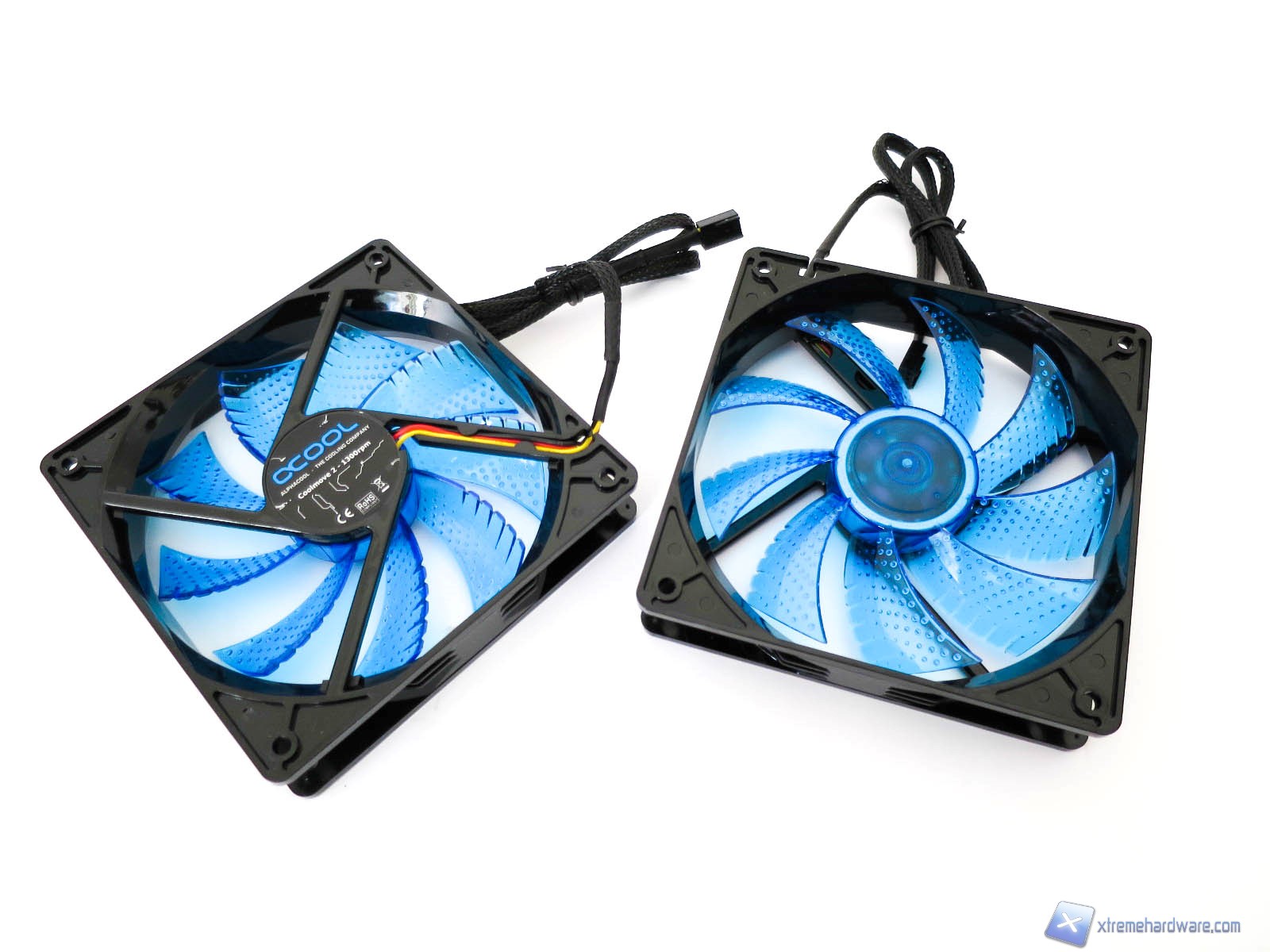 Analizzando nel dettaglio la ventola Coolmove 2 troviamo innanzitutto un design non classico che si caratterizza per una struttura/frame di colore nero che contrasta con le pale di colore azzurro e trasparenti. Le ventole hanno dimensioni standard di 120 x 120 x 25 millimetri di spessore. Siamo sicuri che il vostro occhio si sarà subito focalizzato sulle pale di queste ventole che presentano una struttura non classica. Troviamo 9 pale ed agli estremi di ognuna di esse sono presenti 5 fenditure realizzate per fendere l’aria mantenendo costante la rotazione e massimizzando il flusso. Inoltre notiamo anche dei piccoli rilievi circolari che servono come sempre per una questione aerodinamica, correlata al flusso generato. Le ventole sono dotate di un connettore a 3 pin con relativo cavo rivestito in treccia di tessuto di buona qualità e potranno quindi essere regolate in base alle proprie esigenze tramite un fan controller. Alphacool dichiara per le Coolmove 2 come dati tecnici una rotazione massima di 1300 RPM che garantisce valori di 58,6CFM con una rumorosità di 23 dBA. Prestazioni che le rendono adeguate alla struttura lamellare dell’Eisberg.