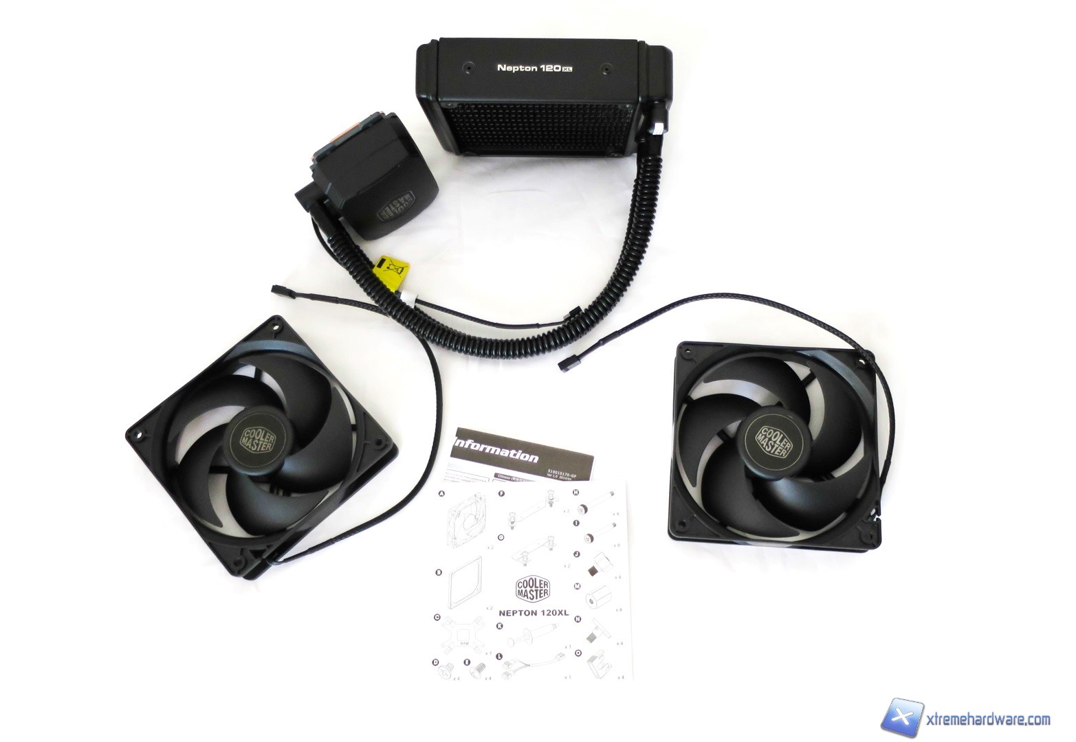 Procedendo ad aprire la confezione, troviamo il Nepton 120XL e il relativo bundle ospitati in una classica sagoma di cartone, oltre che nelle varie buste di plastica trasparente intorno al dissipatore, alle ventole ed al bundle. Tutto è coperto da un sottile strato di neoprene.