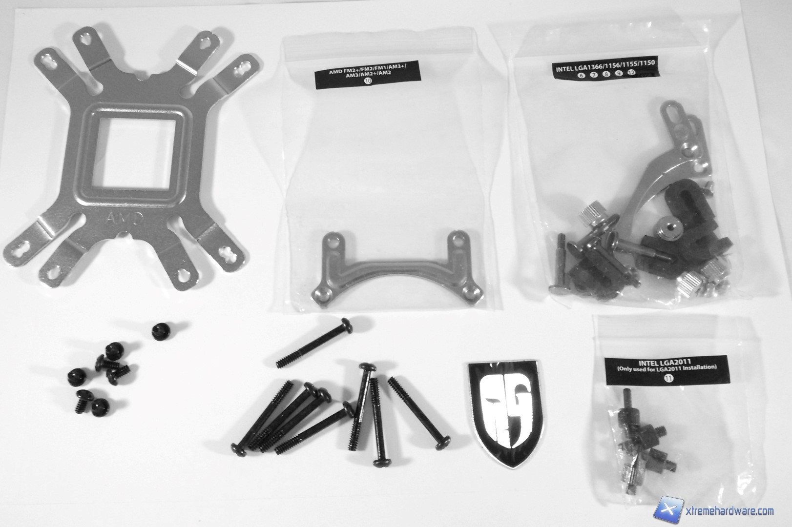 Le staffe e la viteria per il montaggio sono suddivisi in varie bustine a seconda del socket su cui andrà installato il Deepcool Maelstrom 240, troviamo poi le viti per installare le ventole al radiatore e la viteria necessaria a fissare il kit AIO al nostro case. Il backplate è unico e andrà girato in base al proprio socket (AMD o Intel). Completa la dotazione un adesivo con lo scudetto e il logo GamerStorm.