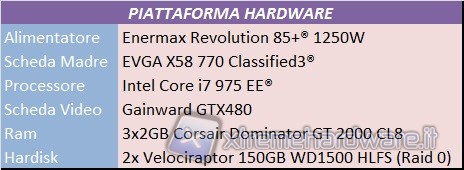 Passiamo ad elencare la componentistica hardware usata per i test. In elenco i componenti principali: