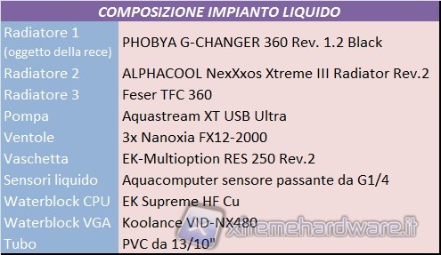 Di seguito invece la componentistica usata nell’impianto a liquido:
