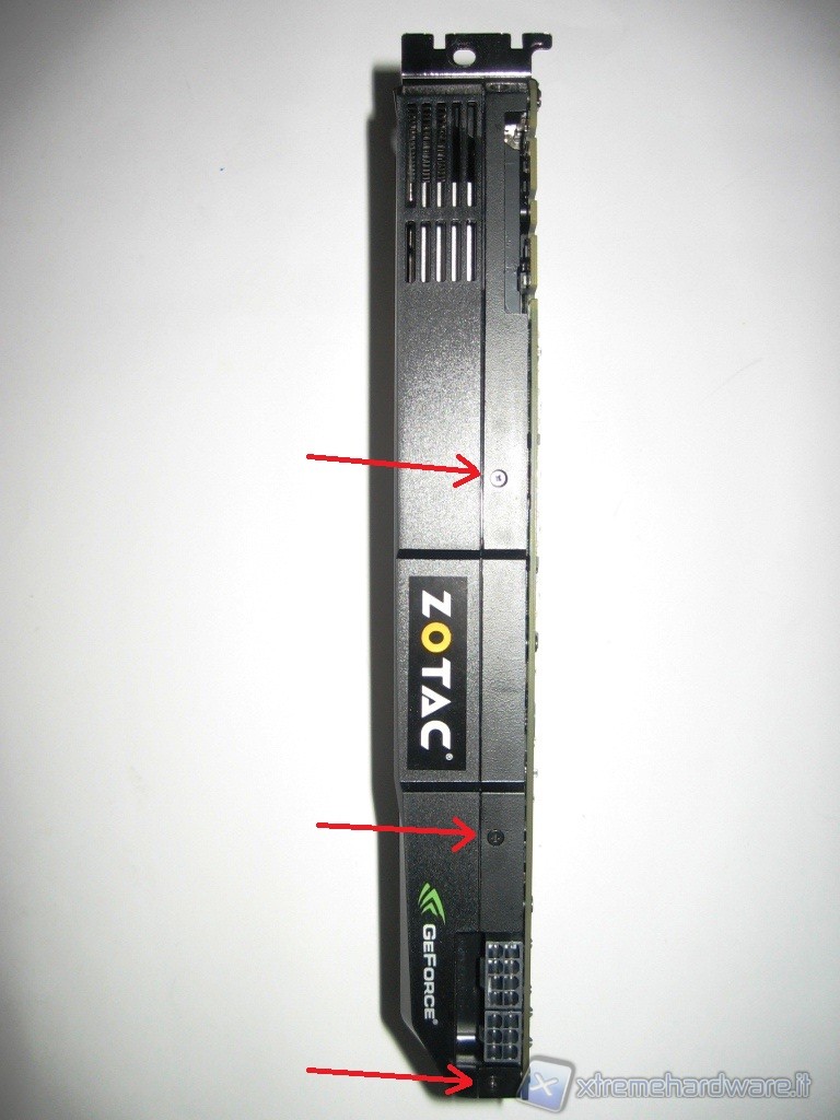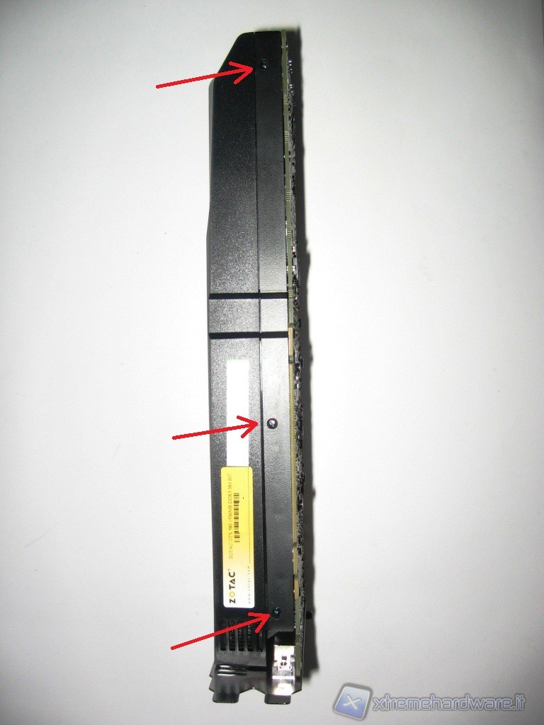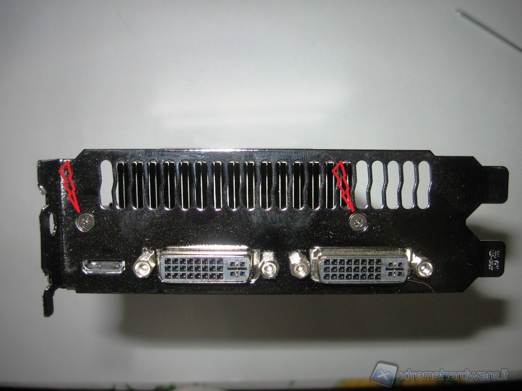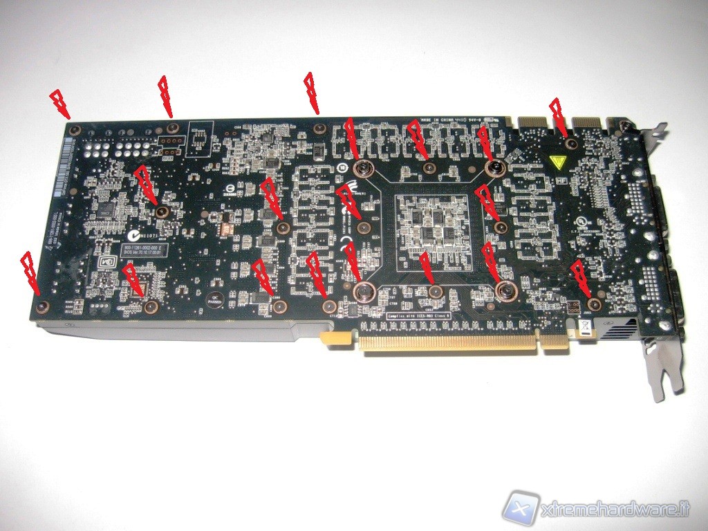 Adesso procedete a svitare le rimanenti viti, con il cacciavite speciale TorX, che sono disposte sul PCB della VGA e segnalate da noi dalle freccette in rosso.