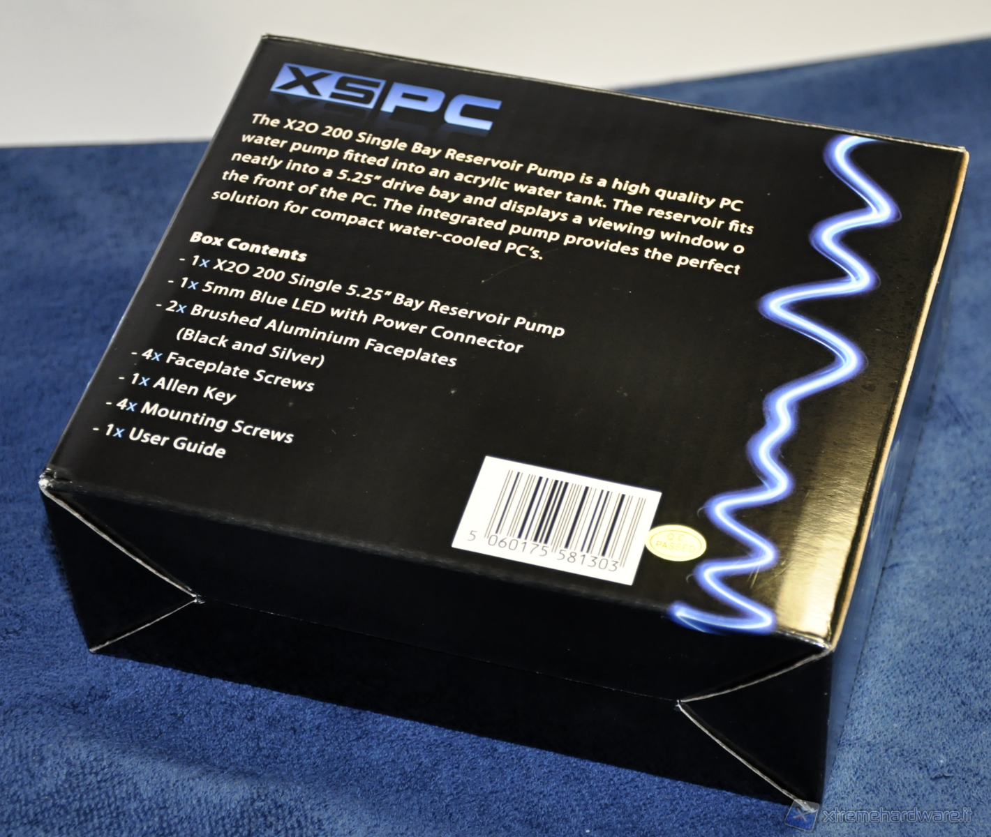 Nella parte retrostante abbiamo una breve descrizione della X2O 200 Single 5,25” Bay Reservoir Pump nonché l’elenco del bundle fornito in dotazione: