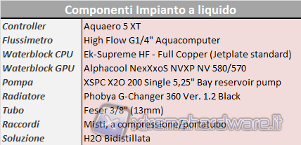 Mentre di seguito la tabella dei componenti utilizzati per l’impianto a liquido:
