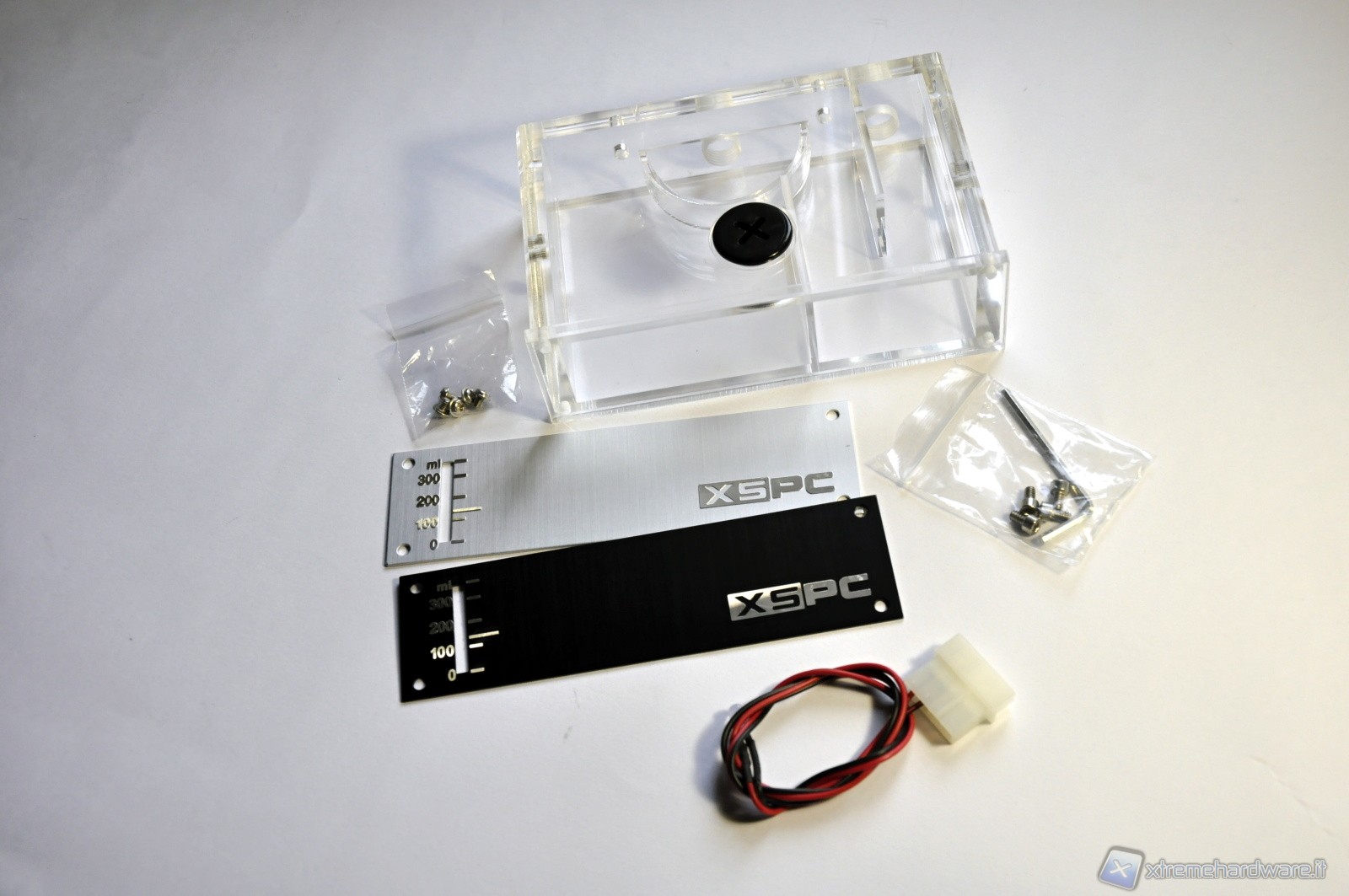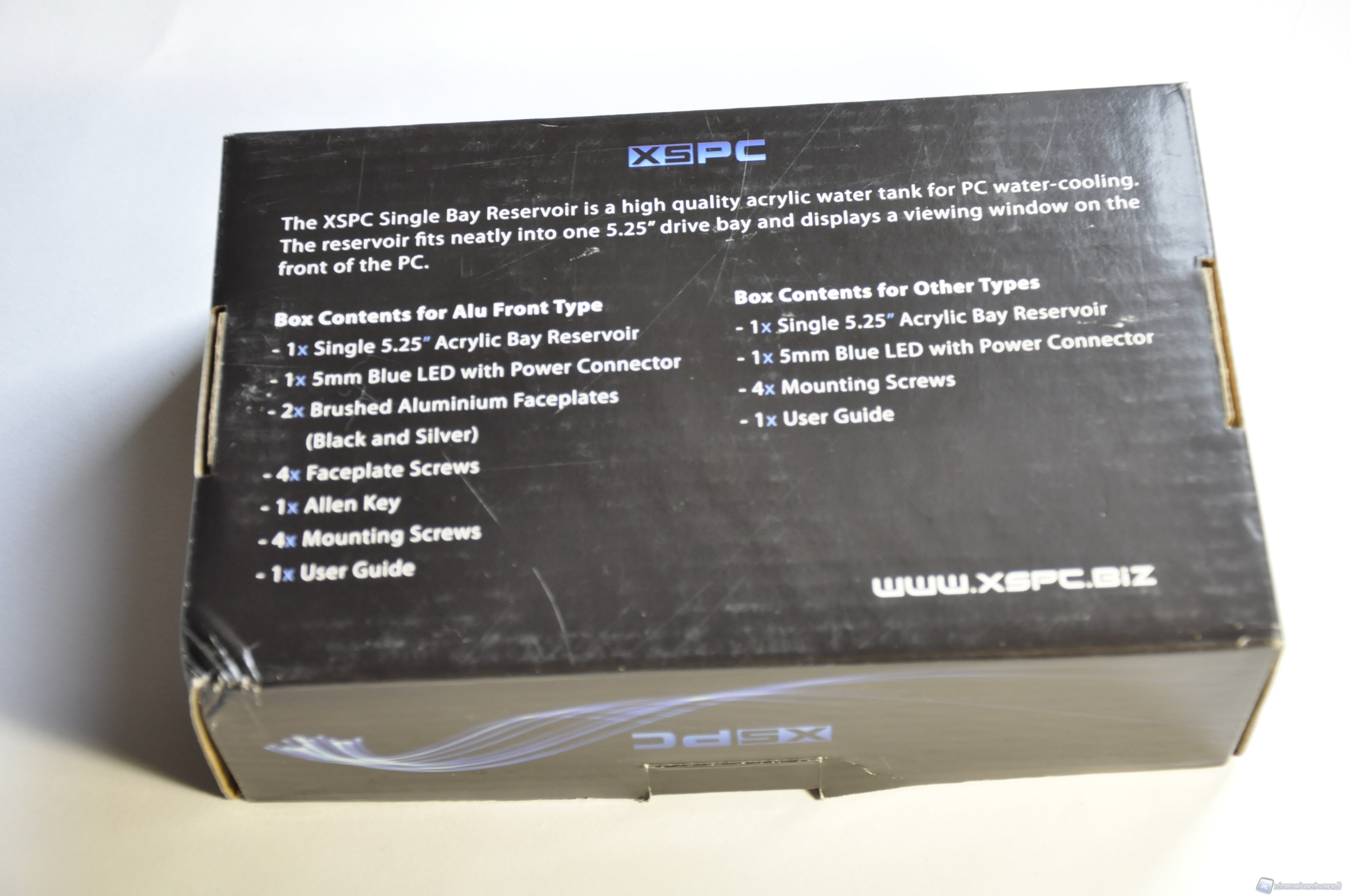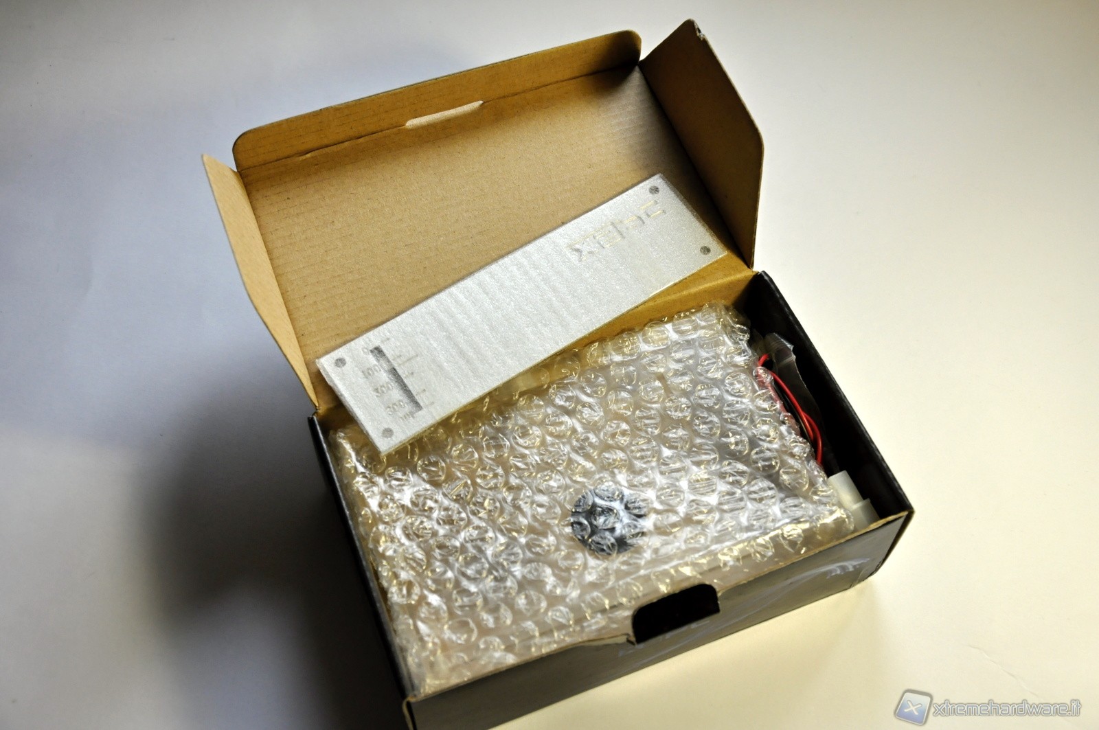 La confezione è quella classica nera con linee ondulate che vanno dal bianco all’azzurro. caratteristica ormai dei prodotti XSPC. Sulla parte frontale vediamo il marchio dell’azienda e sotto il modello di questa vaschetta.
