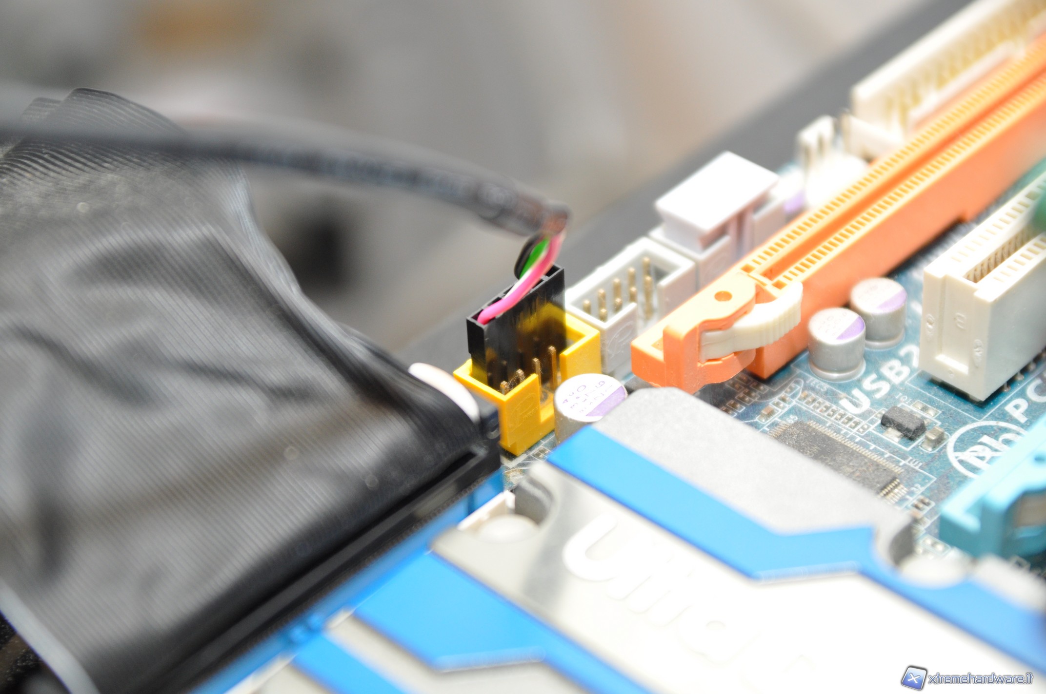 Connettiamo il connettore a 3 pin alla scheda madre e i doppi connettori delle ventole da 120mm ai relativi attacchi 4 pin del KUHLER 920. Inseriamo infine il connettore USB su uno degli attacchi interni della scheda madre, al fine di poter regolare tramite il software “Antec Chill Control V” la velocità di rotazione delle ventole e della pompa.
