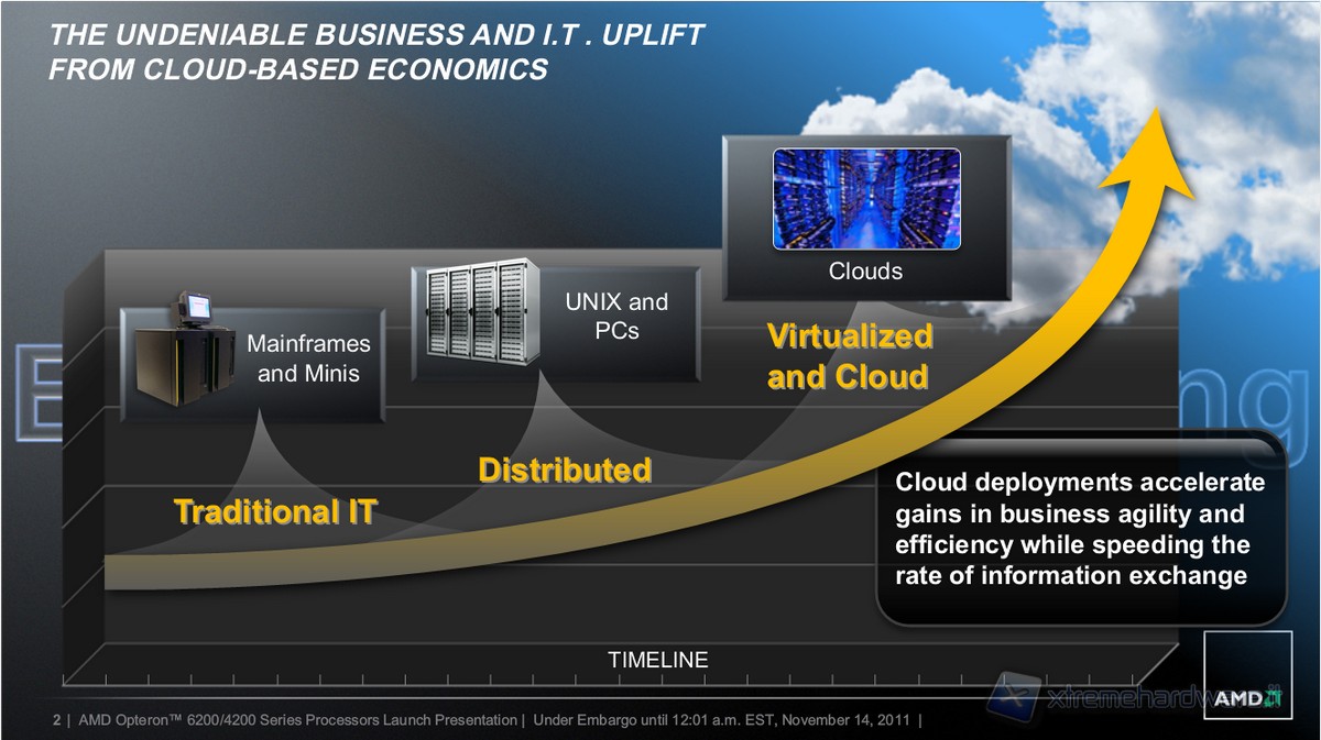 In this article we present the new server architecture based on AMD's Bulldozer core class. We describe the 4200 series CPUs for 1 and 2-socket systems and 6200 series for 2 and 4-socket systems and a maximum of 64 cores.