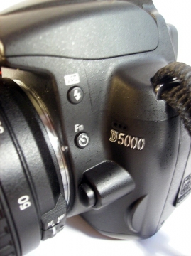 Nella parte anteriore destra notiamo vicino al modello della fotocamera due pulsanti: il primo consentirà di alzare il flash incorporato, il secondo di impostare l’autoscatto, scegliendo fra: 2s, 5s, 10s. Quest’ultimo bottone è inoltre programmabile e noi consigliamo di usarlo per variare la sensibilità iso, in modo che premendo un solo pulsante possiamo variare questo parametro guardando nel mirino, senza distogliere lo sguardo per impostare la sensibilità attraverso il display lcd.