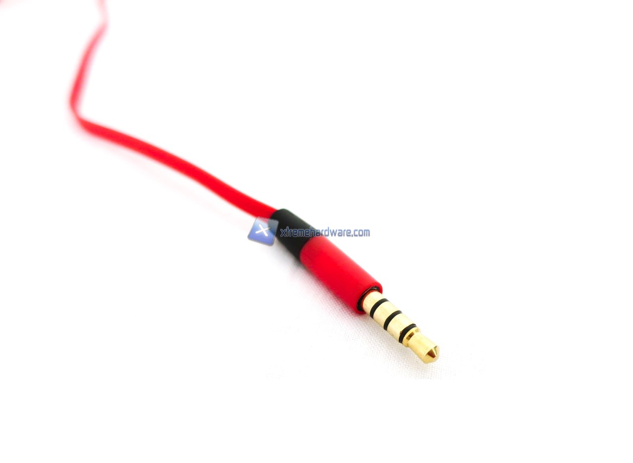 Il cavo delle ISURUS PRO è completamente flessibile, sempre di colore rosso, ed ha una lunghezza complessiva di circa 1,5m più che sufficiente per essere collegato al PC o al nostro smartphone. Il connettore invece è un classico jack da 3,5mm placcato oro.