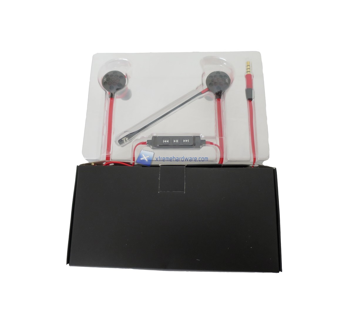 Estratto dalla confezione troveremo dunque un ulteriore blister di plastica ospitante le due estremità dell’headset con in più il controller posizionato centralmente. Il resto dei cavi e del bundle sarà ospitato nella confezione di cartone.