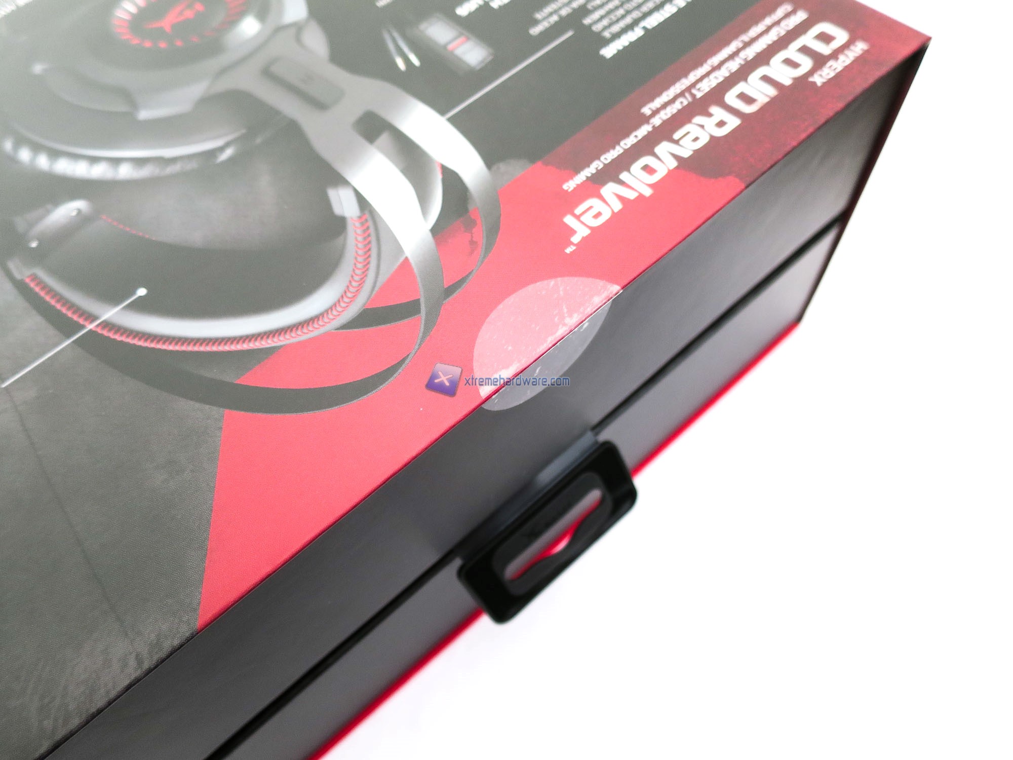 Osserviamo che anche per le Cloud Revolver è stata utilizzata una copertura principale in cartone rispetto al box/cofanetto principali con l’immancabile scritta HyperX argentata.