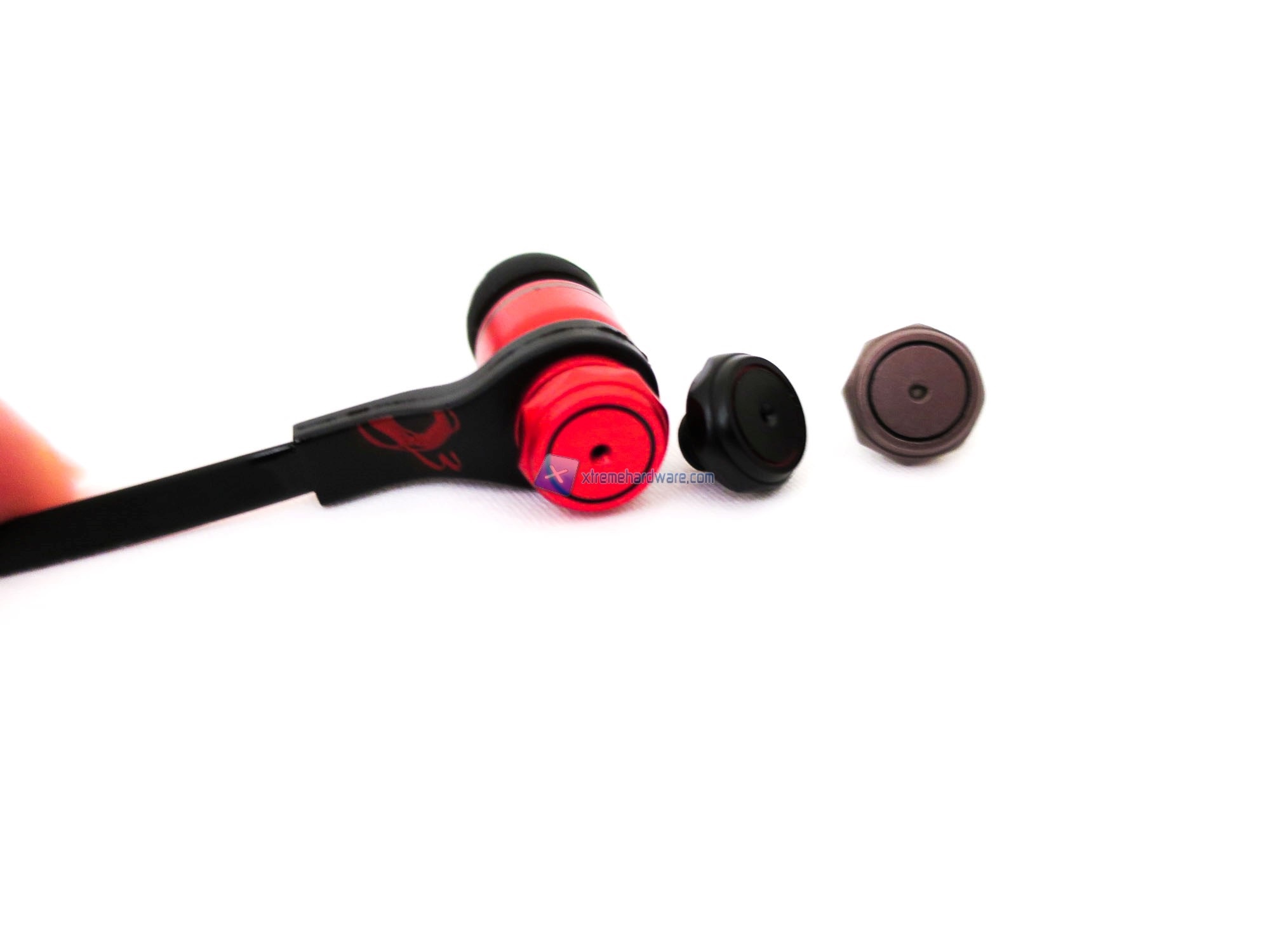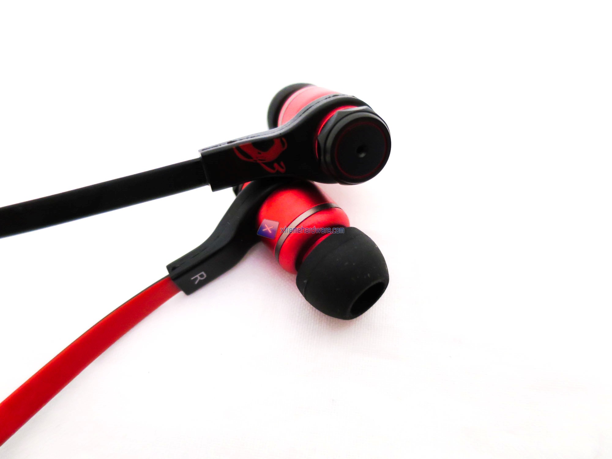 Passiamo ad analizzare le cuffie. Troviamo un design aggressivo ma allo stesso tempo elegante. Le dimensioni sono compatte per la struttura principale (Driver da 9mm) e per la struttura esterna di ogni singola cuffia. Ogni cuffia è personalizzata con il logo del brand oltre che con la sigla per identificare il lato giusto. Troviamo una combinazione di colori Nero e Rosso per la struttura della singola cuffia così come per i due cavi che si uniranno in uno unico da collegare al dispositivo. Ozone per le TriFX ha scelto cavi flat e rivestiti di una gomma siliconica molto flessibile e maneggiabile.