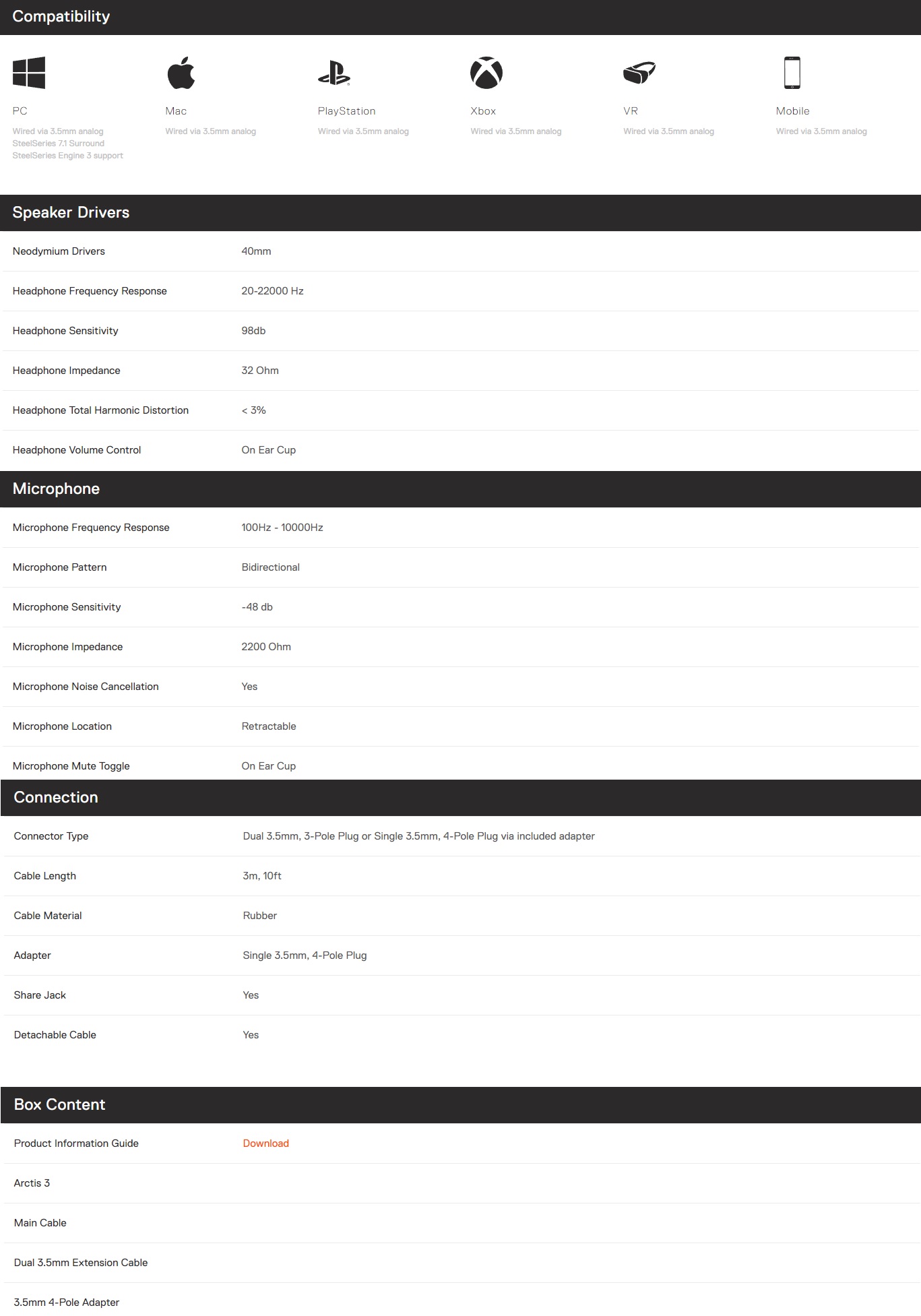 Procediamo dunque ad elencare brevemente le caratteristiche delle cuffie SteelSeries Arctis 3: