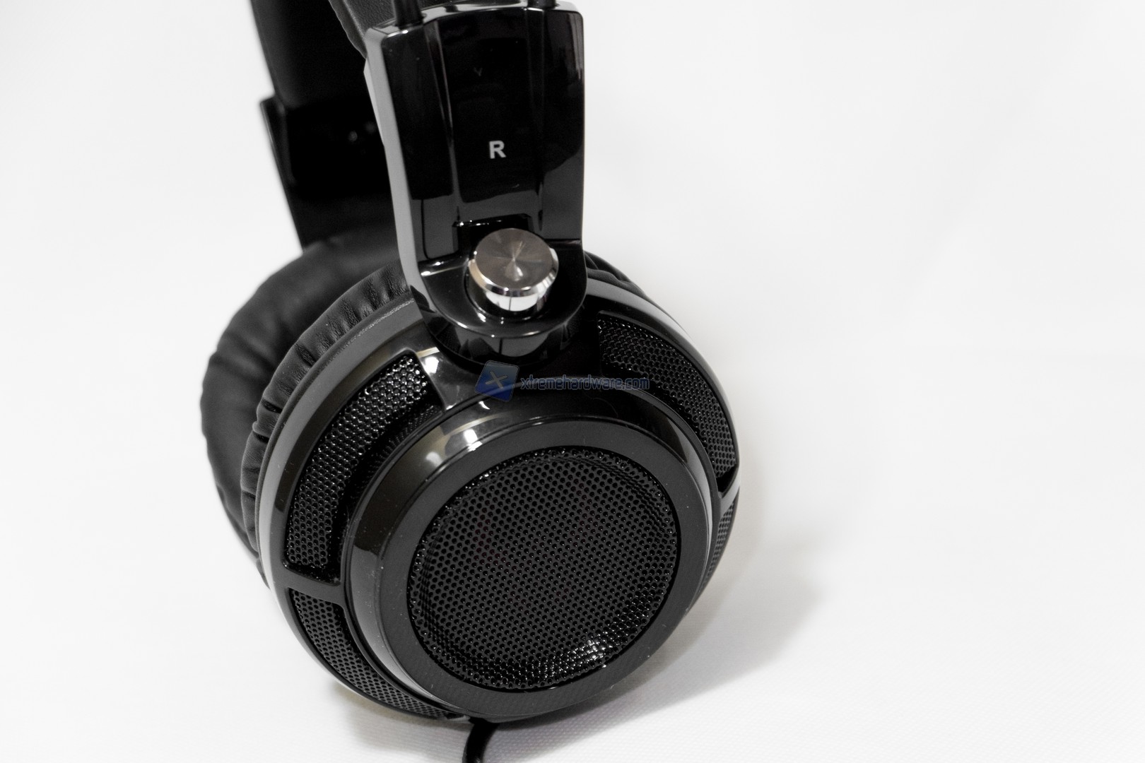 Adesso procediamo con l’analisi qualitativa. Le G1 sono caratterizzate da un design “all-black”, caratteristica sicuramente apprezzata da coloro che non amano headset troppo appariscenti. Le cuffie sono costruite integralmente in plastica, caratterizzata da una finitura lucida, che le rende un magnete per polvere ed impronte. Infine le dimensioni sono davvero generose e il peso si aggira sui 405g.
