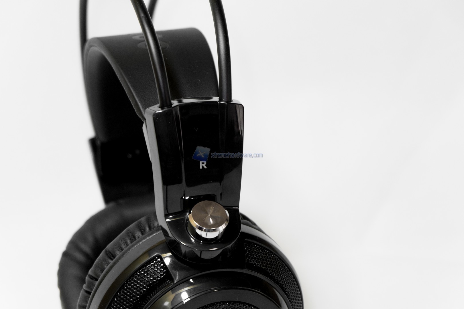 Analizzando l’archetto notiamo che quest’ultimo non presenta un struttura classica, ma al contrario abbiamo due archetti ognuno dei quali contraddistinto da una diversa funzionalità. La rigidità strutturale è affidata, infatti, all’archetto superiore che ha il compito di sostenere i due padiglioni auricolari, mentre la vestibilità e il comfort sono affidati alla classica headband flessibile in pelle, in grado adattarsi nel migliore di modi al cranio di qualsiasi giocatore con estrema facilità, senza doverla regolare manualmente.