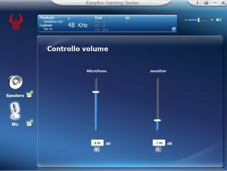 Il software fornito insieme al prodotto è molto semplice, forse anche troppo, ma allo stesso tempo consente di modificare e personalizzare le principali impostazioni audio delle G1. Possiamo regolare il volume degli altoparlanti, regolare la potenza d’uscita tra canale destro e sinistro ed infine possiamo regolare la sensibilità del microfono.