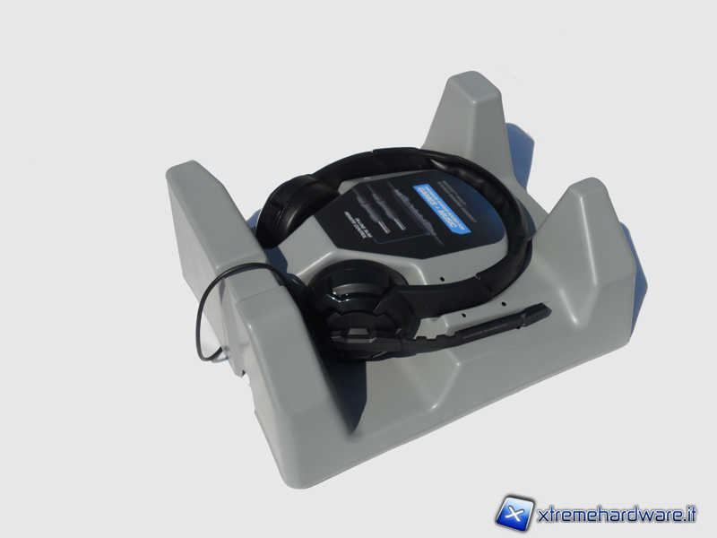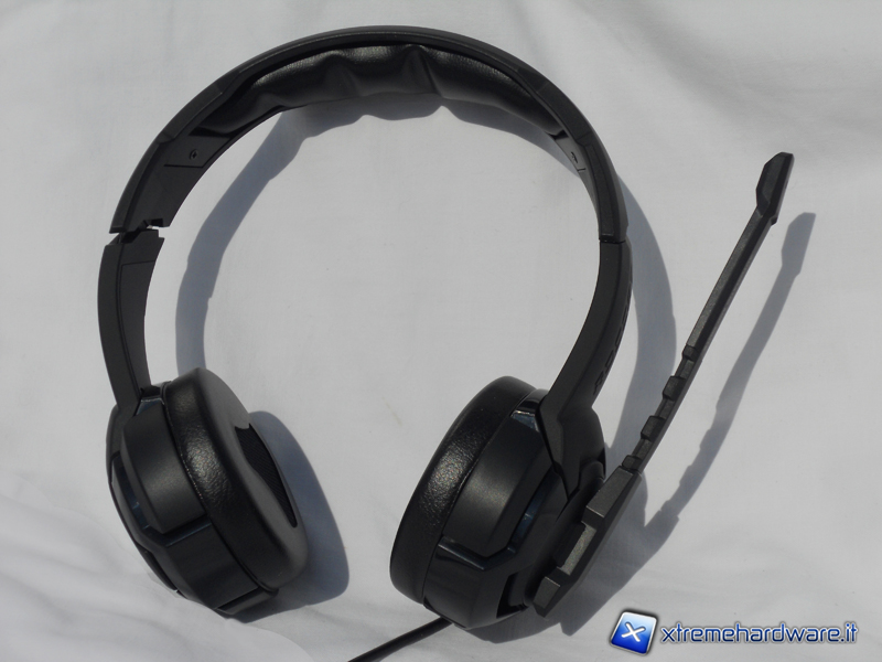 Nella parte esterna del padiglione sinistro è presente il microfono che, una volta ruotato all'altezza della bocca, si attiva e, al contrario, si disattiva se riportato nella posizione di "riposo". Questa caratteristica risulta molto comoda, il microfono però è rigido e non può essere avvicinato ulteriormente. L'asta del microfono può anche essere regolata lateralmente piegandola in un punto specifico ma tuttavia risulta essere sempre un po’ troppo lontana dalla bocca. Il design del microfono è in sintonia con quello delle cuffie, anch'esso infatti presenta forme spigolose e complesse in stile hi-tech.