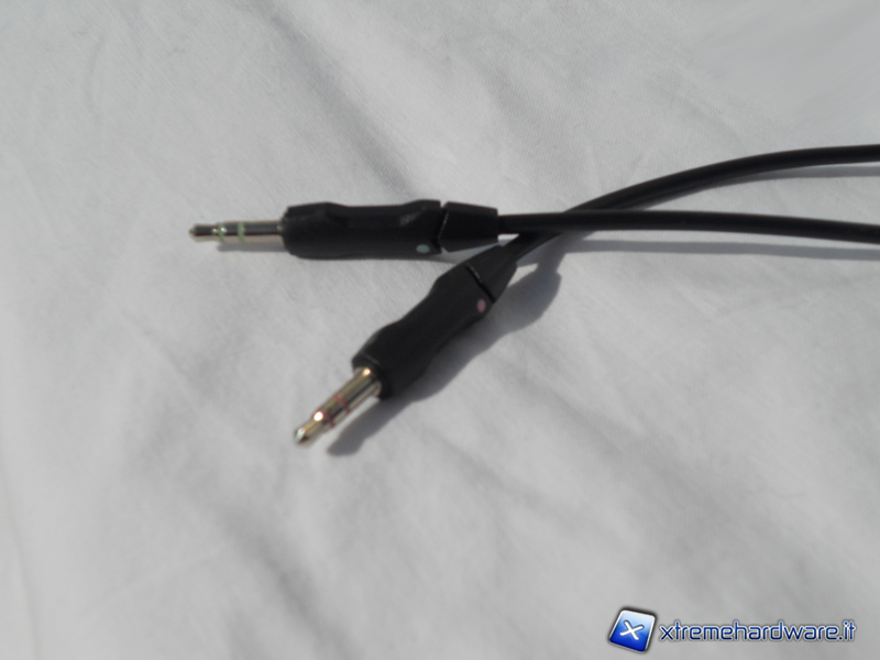 Infine, all'estremità del filo, sono presenti i due jack da 3,5mm che facilitano l'installazione degli stessi grazie a particolari rosa e verdi rispettivamente per il jack del microfono e per quello delle cuffie. I jack non sono placcati in oro e sono pressofusi.