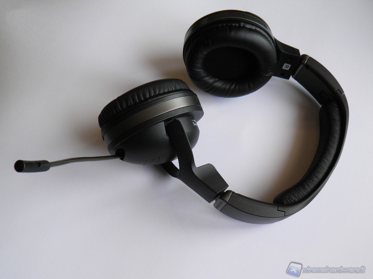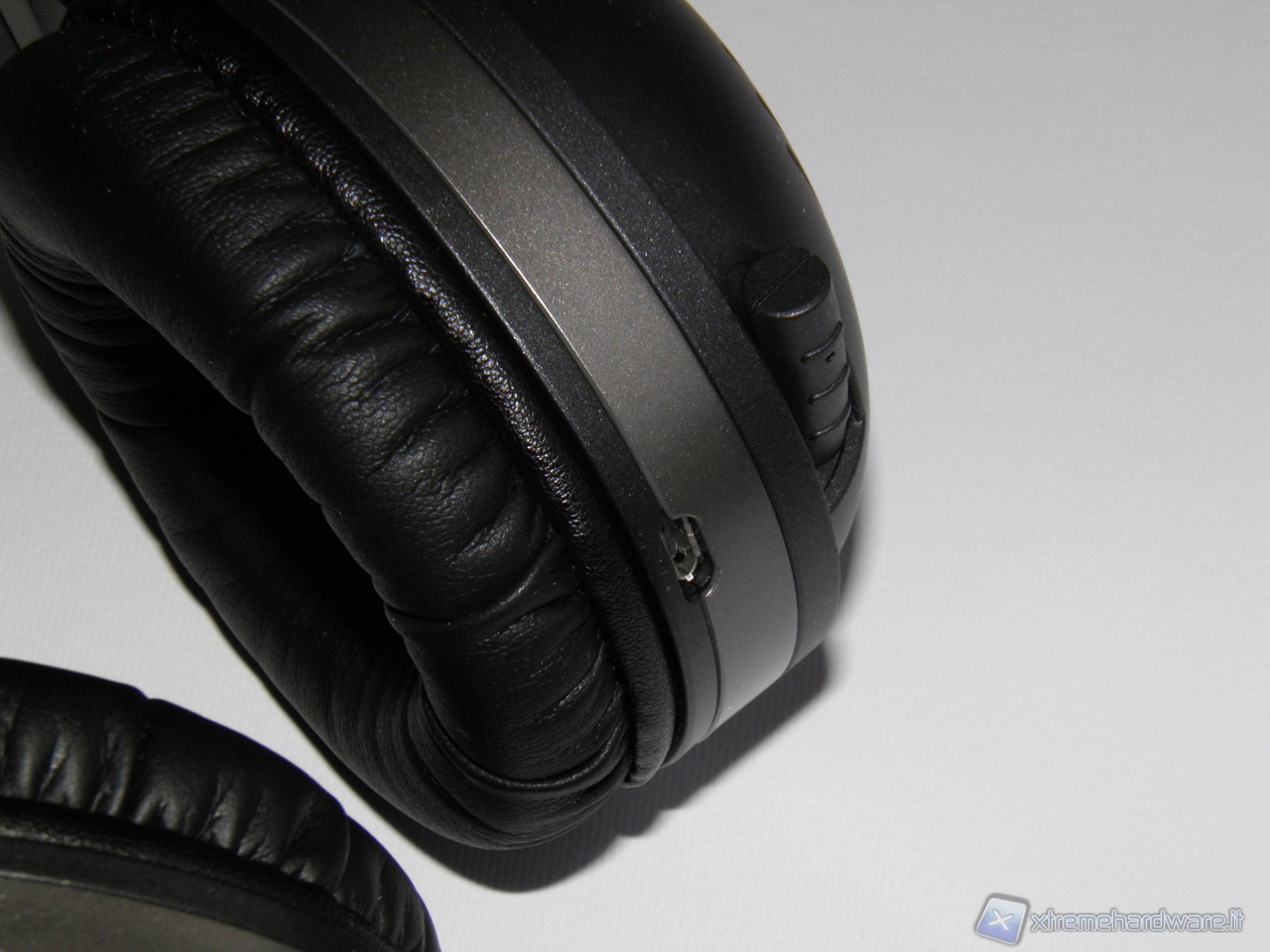 Sul lato sinistro (L) delle cuffie è presente il connettore dedicato al cavo proprietario che andrà connesso al gamepad della XBOX 360. Sul cavo è presente il controllo del volume oltre all'interruttore per spegnere/accendere il microfono.