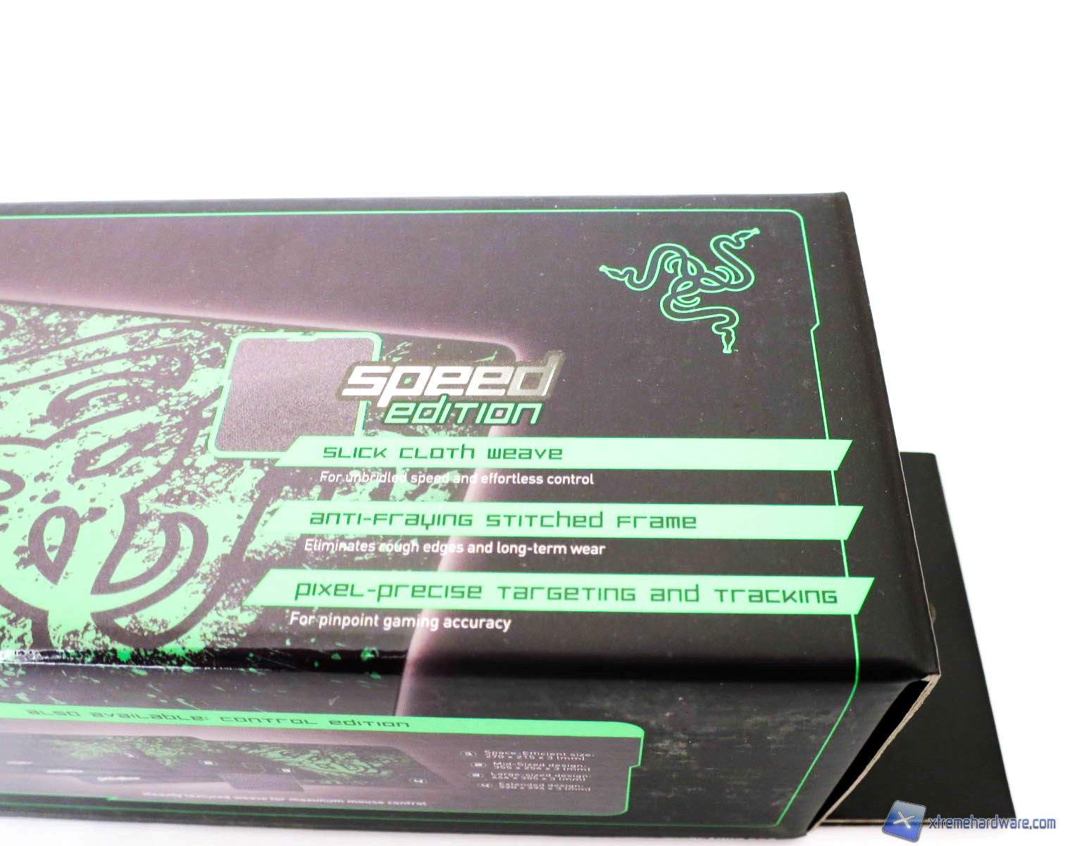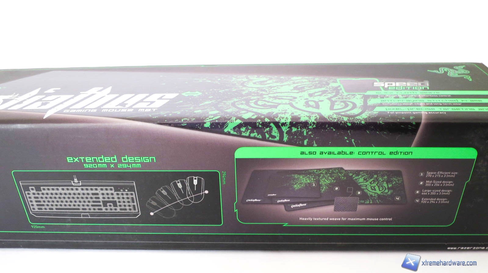 Estratto dalla confezione, ci troviamo di fronte ad un mousepad che misura 920 millimetri di lunghezza per 294 millimetri di larghezza. La versione Extended è quella più grande disponibile e permette di ospitare sia la tastiera che il mouse garantendo quindi una superficie di lavoro o di gaming adeguata. La versione del mousepad che abbiamo ricevuto è la Speed Edition ovvero la superficie ha un trattamento che permette la perfetta scorrevolezza del mouse. Ovviamente esiste anche la versione “control” che con una superficie a trama leggermente più larga permette di controllare il mouse grazie al maggior attrito. Inoltre questa versione inviataci è ancora la “vecchia” con il design e la texture del logo Razer. In commercio infatti esiste la versione nuova con la superficie completamente verde ed il nuovo design con sempre il logo Razer. Ovviamente in termini pratici non cambia molto tra l’una o l’altra versione.