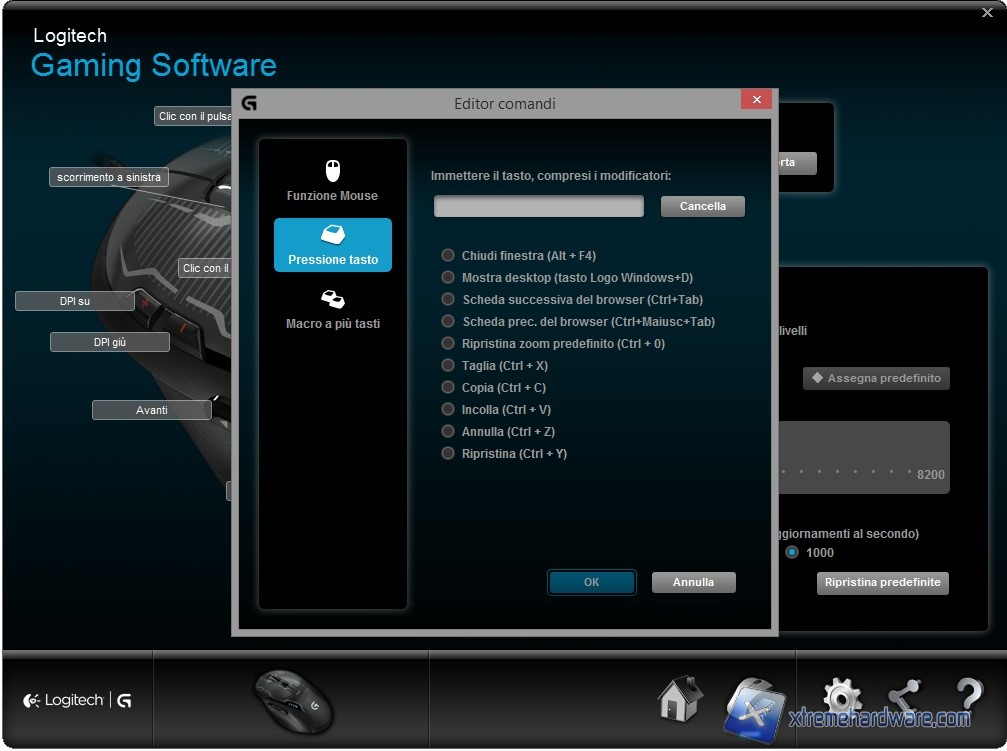 Installato dunque il software di gestione Logitech, non ci resterà che avviarlo e nel caso creare profili o assegnare nuove funzioni ai tasti presenti.