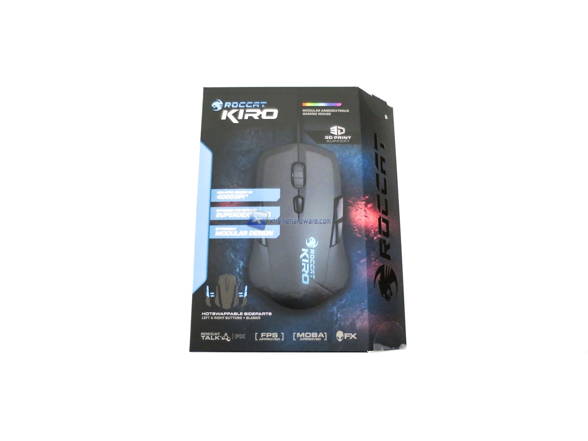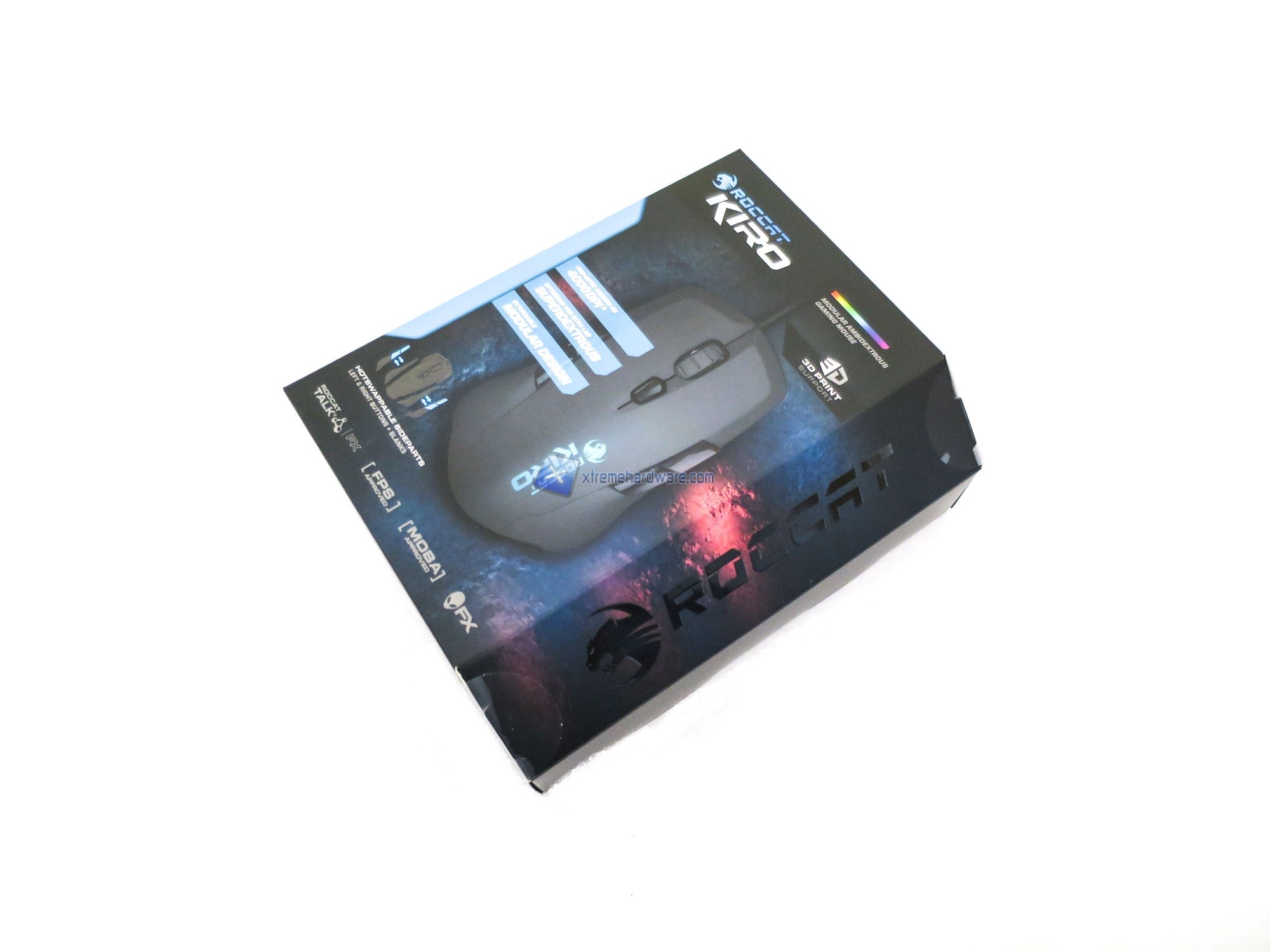 ROCCAT come sempre ripone molta cura sia per i dettagli; è possibile osservare nella confezione sia informazioni e caratteristiche dettagliate sia un'articolata grafica a presentazione del prodotto. Confezione di cartone con la classica scritta ROCCAT che campeggia sul lato destro.