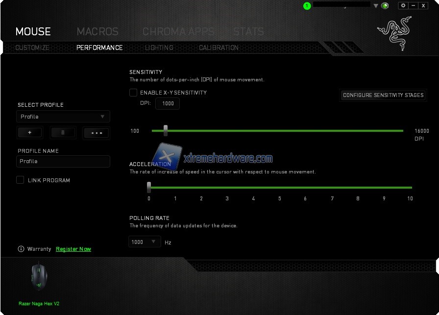 Passando al successivo SubMenù ‘’Performance’’ avremo modo di impostare la risoluzione DPI ideale per il nostro stile di gioco o diversi Step DPI cui variare a seconda delle necessità. Impostabile anche Polling Rate e Accelerazione allo stesso modo.