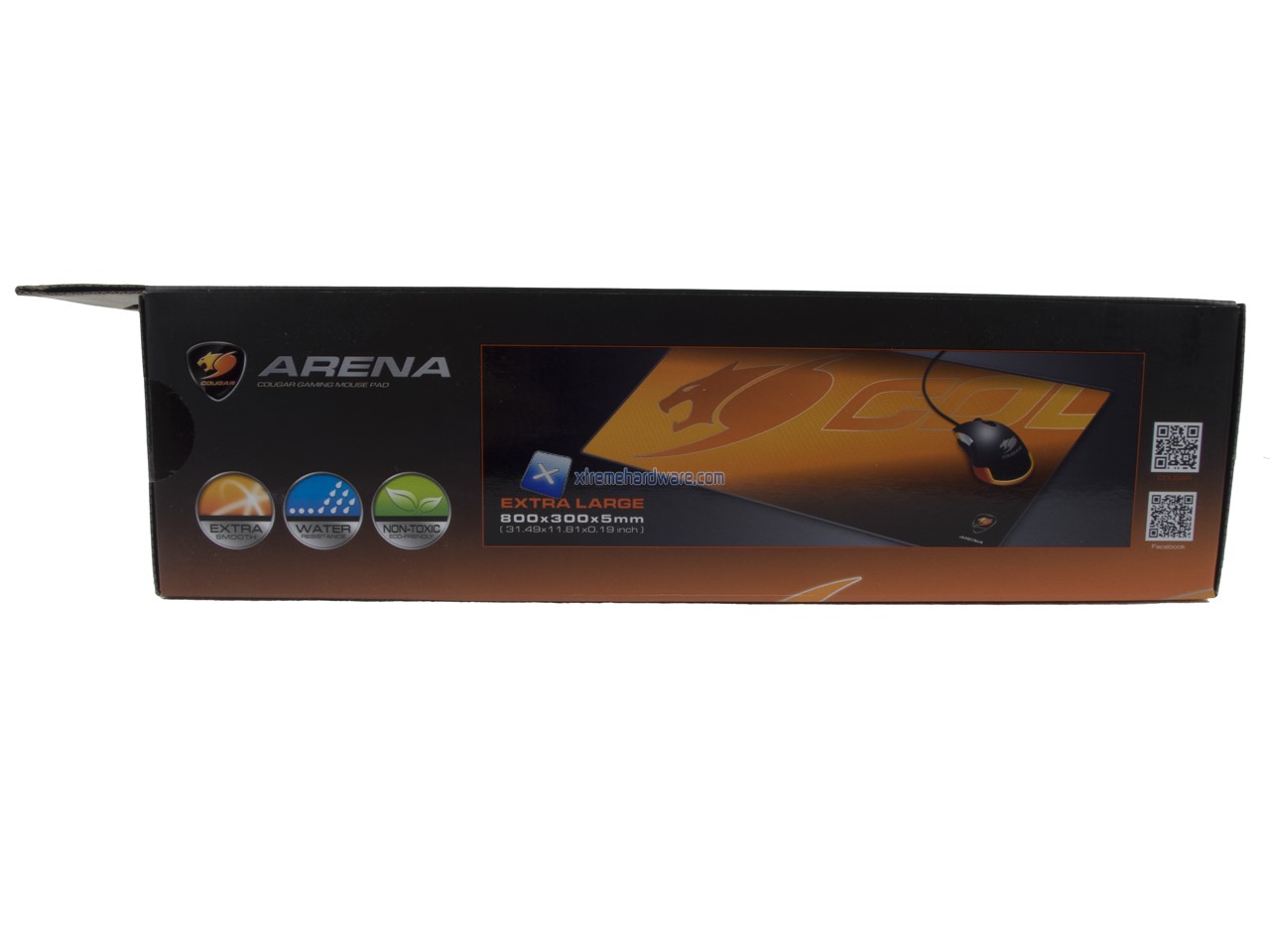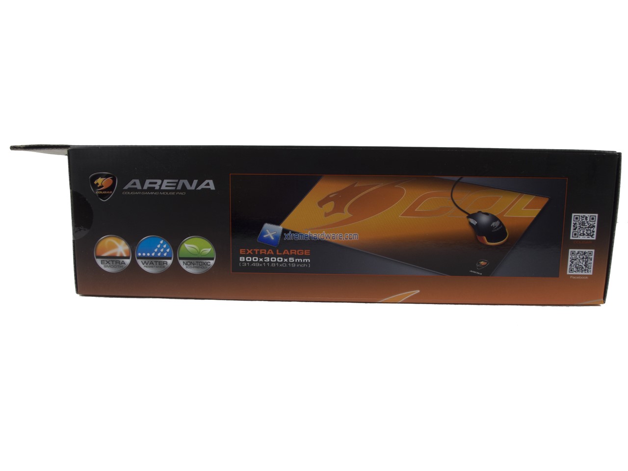 La confezione del Cougar Arena è classica per dimensioni e informazioni riportate. Potremo sempre toccare con mano parte della superficie del mousepad tramite un’apertura laterale.