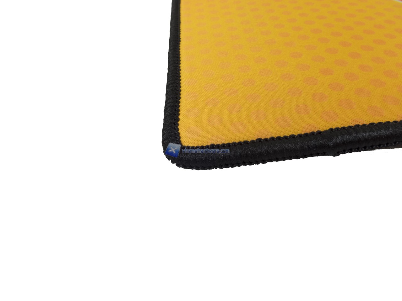 Immancabile invece, inferiormente, una superficie antiscivolo che assicurerà il mousepad alla scrivania, piano d’appoggio.