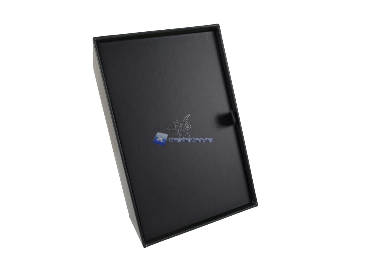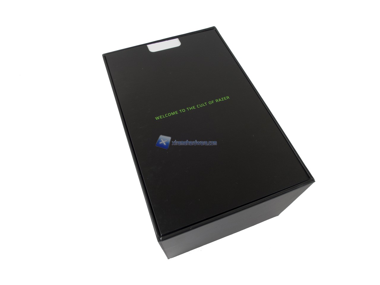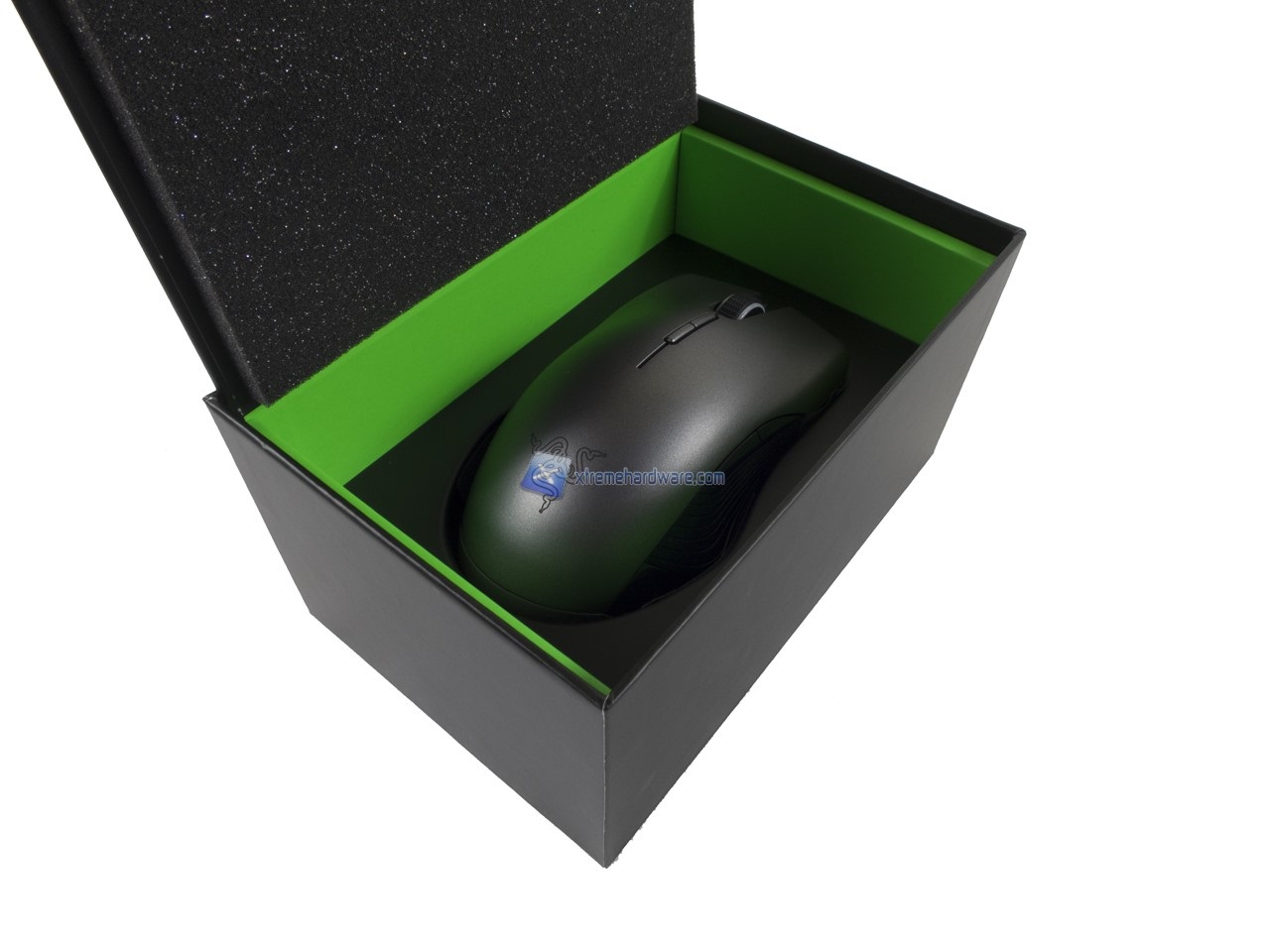 Una volta rimosso e sfilato il coperchio, si perché la confezione è un cofanetto, arriviamo quasi al mouse e al relativo bundle. Non prima di aver notato i classici dettagli Razer.