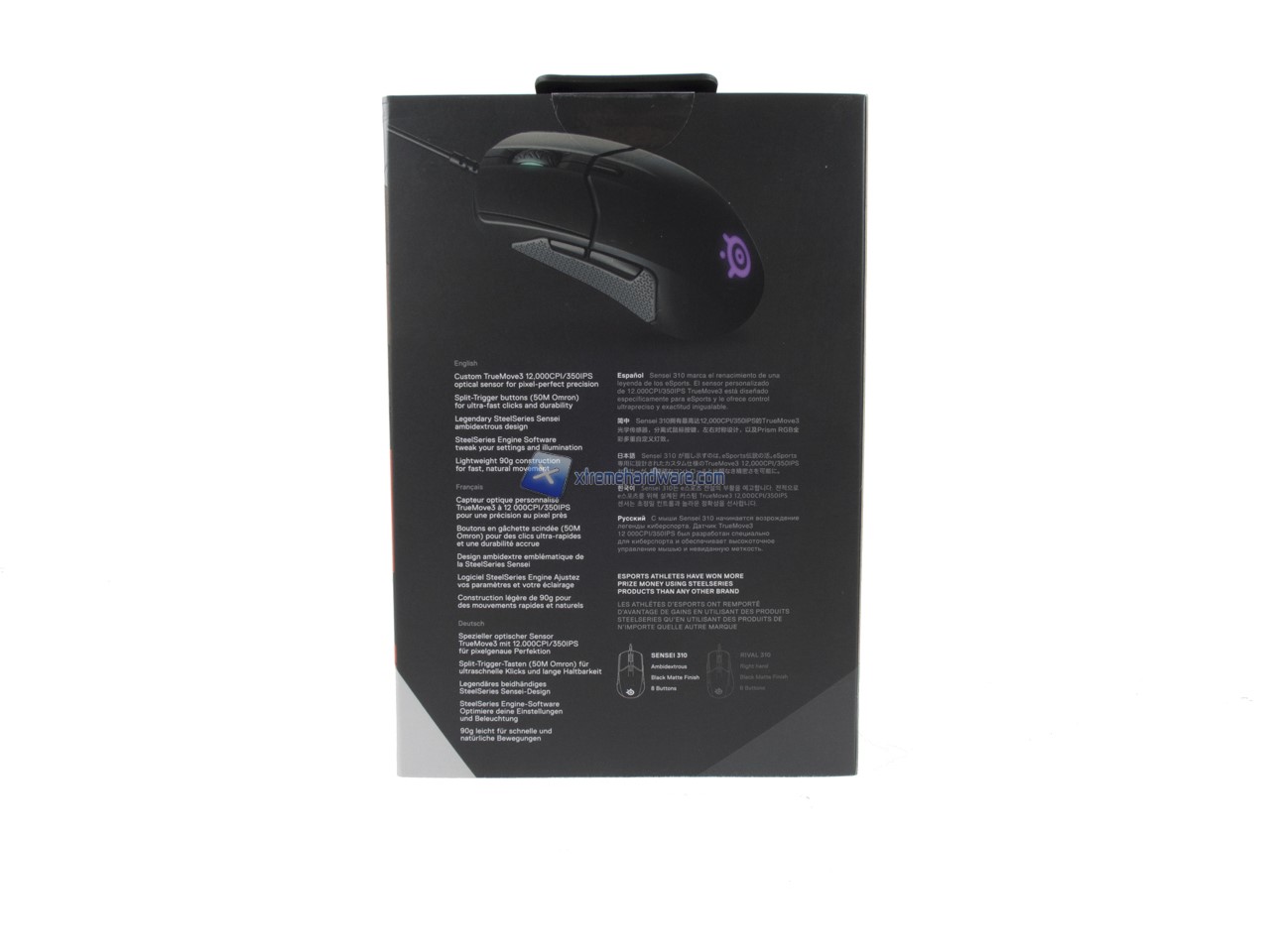 La confezione dello SteelSeries Sensei 310 è la consueta che abbiamo visto già con alcuni dei più recenti prodotti SteelSeries come le Arctis 3 (QUI la recensione). Su questa troveremo tutte le principali informazioni e caratteristiche del prodotto nonché alcune immagini illustrative.