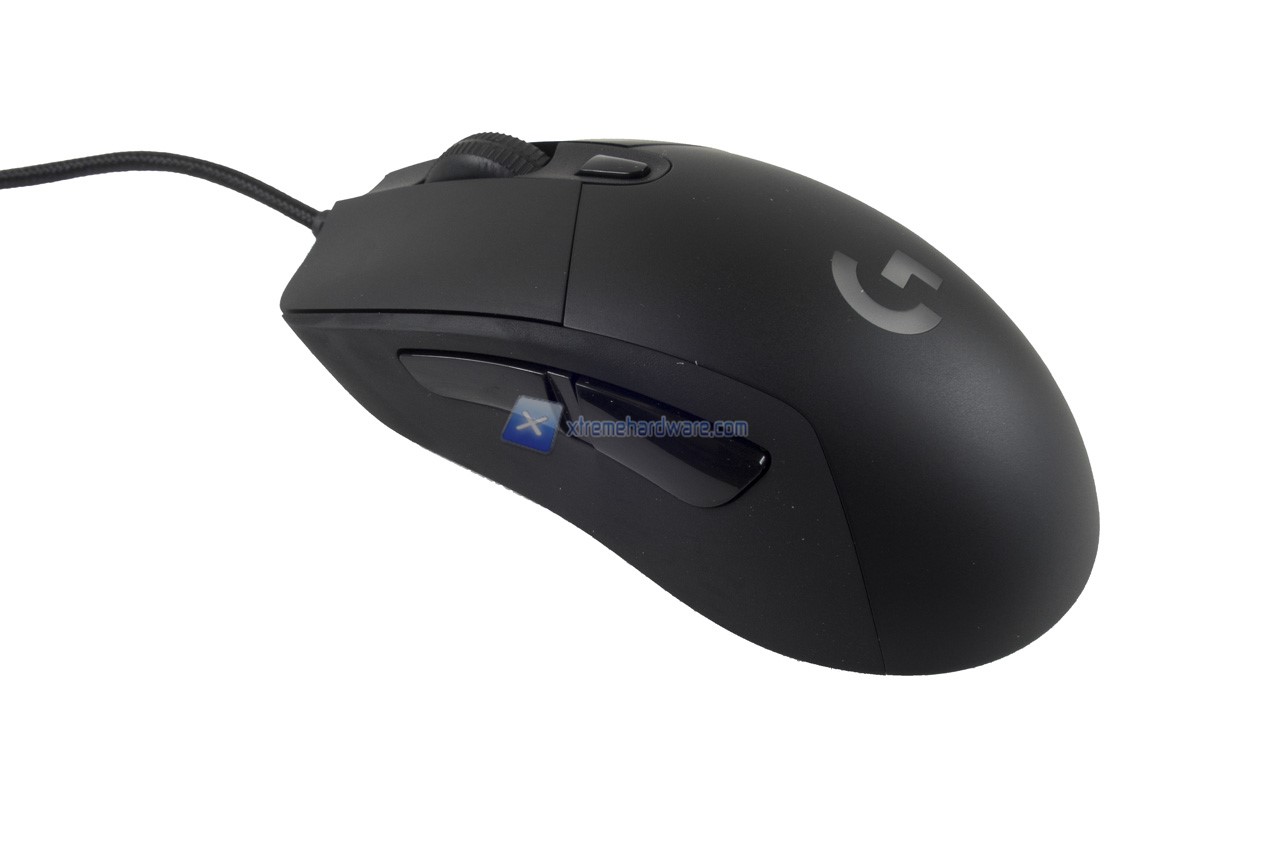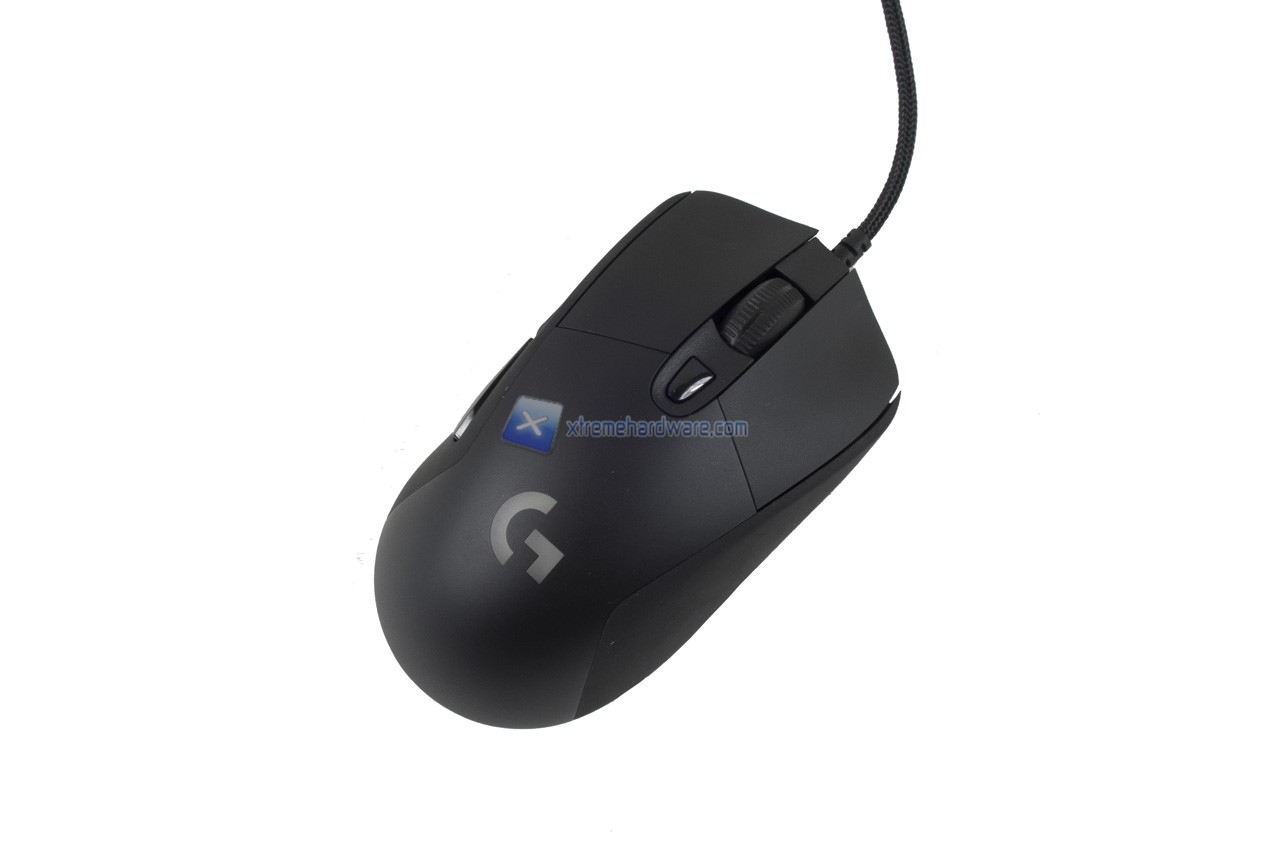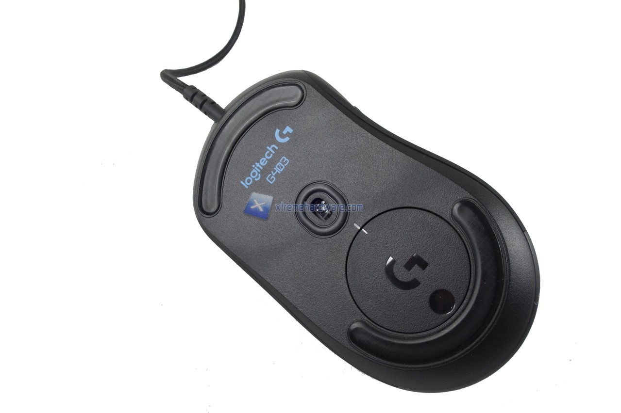 Partiamo dal dorso del mouse. Osserviamo la consueta gobba della serie G4xx di Logitech che rende l’impugnatura sul mouse comfortevole e naturale. Presente il logo della serie G che verrà retroilluminato del colore e con l’effetto che potremo scegliere tramite il software di gestione.