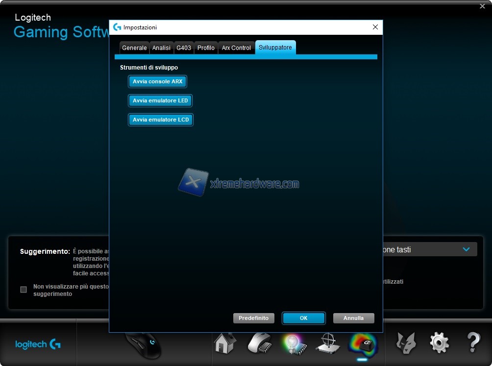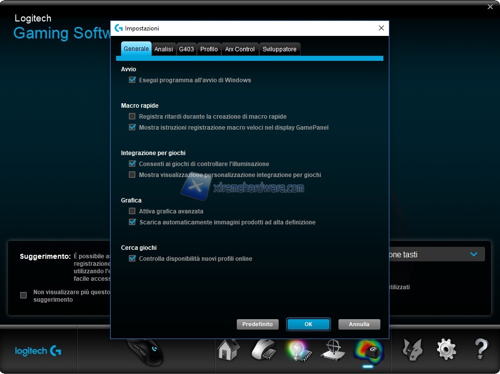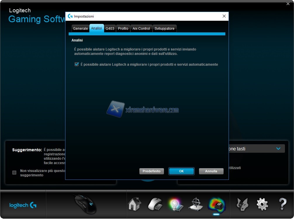 Passiamo velocemente al consueto software di gestione Logitech Gaming Software o come molti lo conoscono LGS. Questa volta lo analizzeremo in relazione al rilevamento del G403 Prodigy connesso.