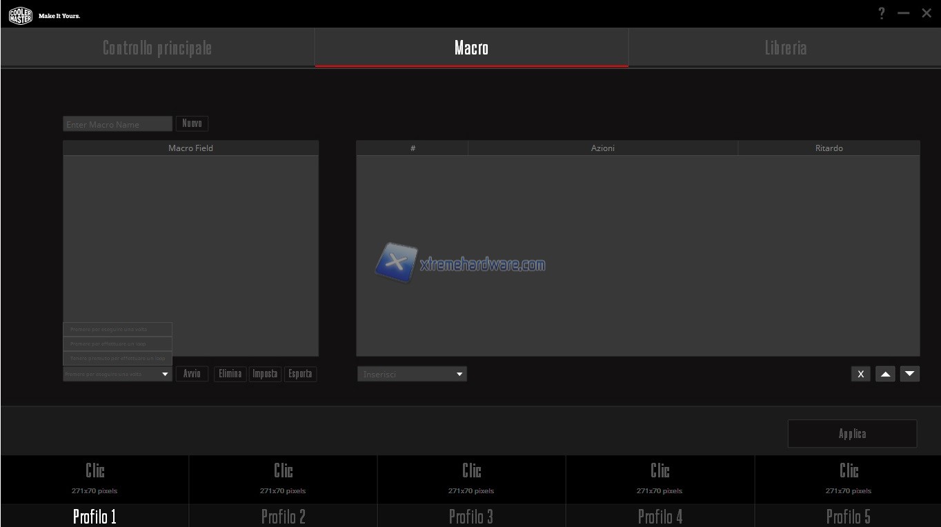 Passiamo ora al secondo Menù principale ovvero ‘’Macro’’. Qui potremo creare eventualmente la nostra Macro e impostarla su di uno dei tasti fisici o virtuali del mouse.