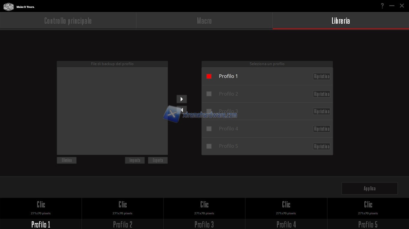 Infine in ‘’Libreria’’ potremo ripristinare i diversi Profili generali o creare un backup degli stessi per un trasferimento più rapido.