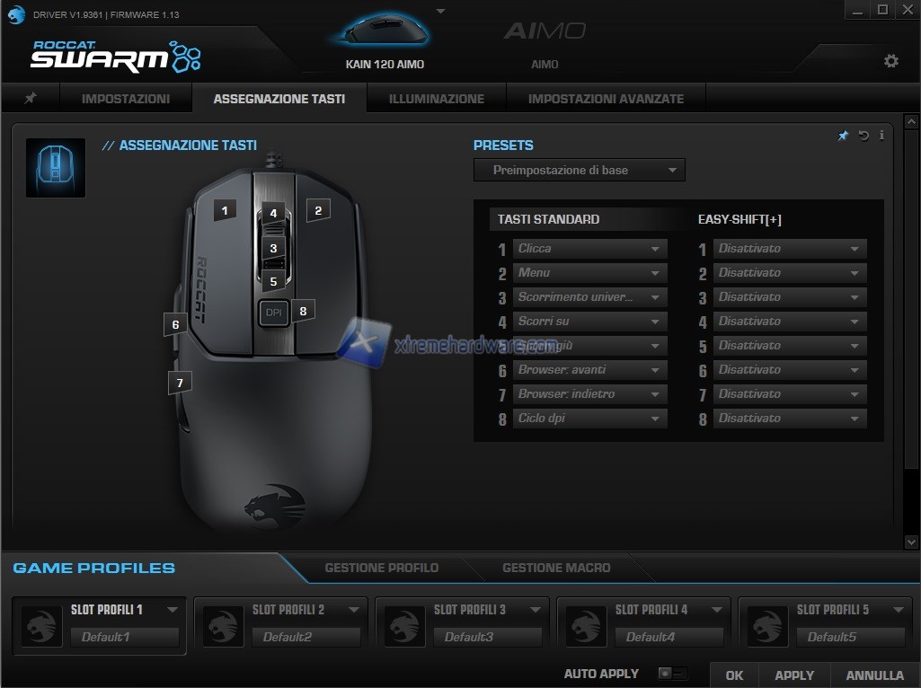 ROCCAT Swarm è da sempre il software di gestione delle periferiche ROCCAT. Sin dalle prime versioni si è rivelato un software pratico, veloce e contenente tutte le principali voci e impostazioni per la personalizzazione di mouse e tastiera del brand tedesco. Negli anni la sua veste grafica non è cambiata molto ma è stato migliorato a livello di codice e funzionalità messe a disposizione. Un software disponibile nelle principali lingue tra cui anche l’italiano.