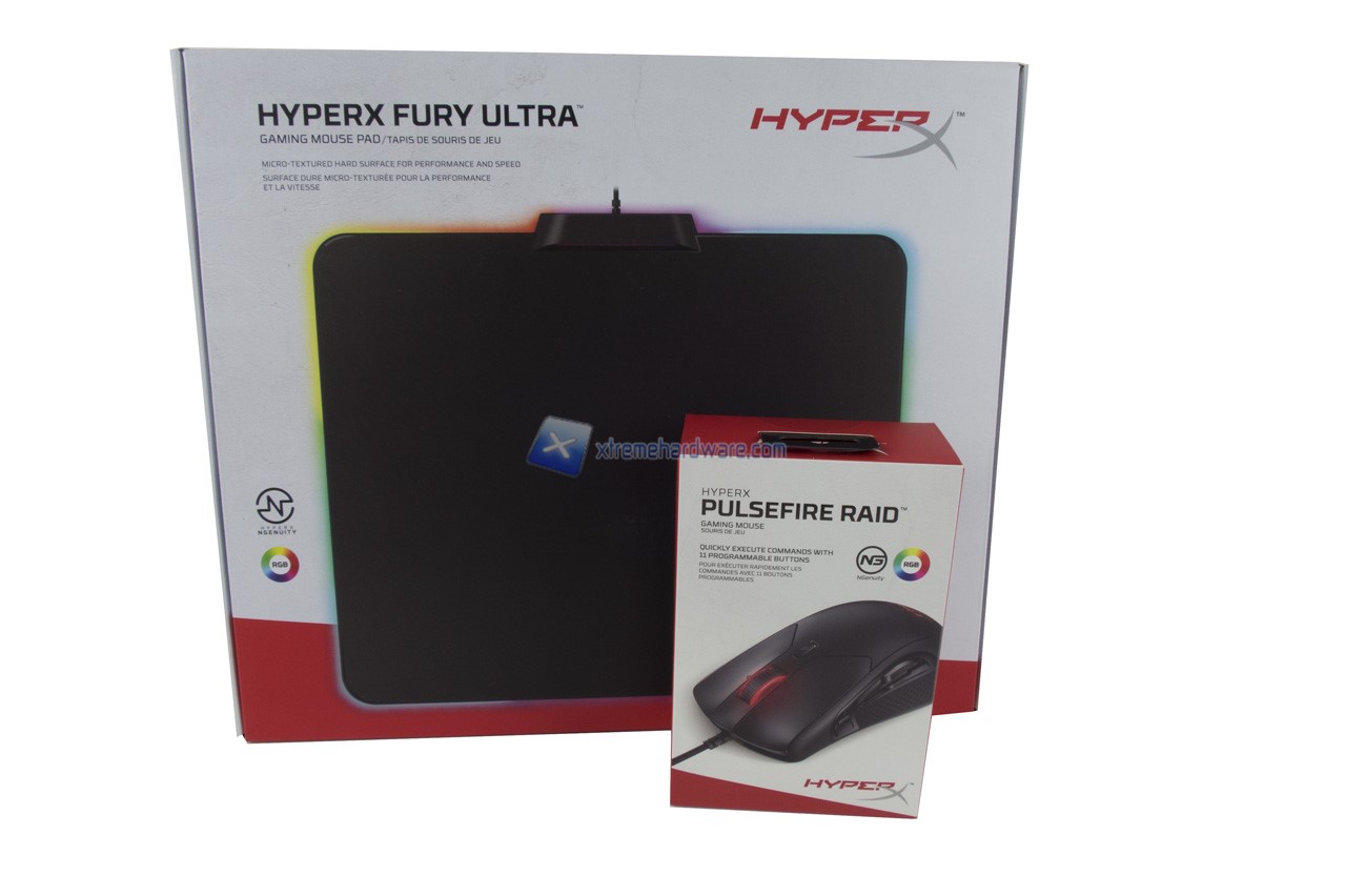 E’ passato circa un mese dal CES 2020 dove HyperX ha presentato diversi e nuovi prodotti, in particolar modo periferiche. Quest’oggi andremo a recensire due prodotti ricevuti di recente. Parliamo precisamente del mouse HyperX Pulsefire Raid e del mousepad HyperX Fury Ultra. L’HyperX Pulsefire Raid come leggete dal nome appartiene alla classica serie di mouse Pulsefire di HyperX. Il modello Raid rispetto il modello FPS Pro o altri modelli come il Surge è un mouse indicato per giochi MMO o MOBA grazie alla sua forma ergonomica e ai suoi ben 11 tasti. Naturalmente non si preclude la piena possibilità di utilizzarlo per giochi FPS. Un’altra principale caratteristica di suddetto modello è l’adozione di un sensore ottico Pixart PMW-3389 da 16.000 DPI, attualmente punta di diamante fra i sensori ottici per precisione e tracking. Con il Pulsefire Raid andremo a recensire anche il mousepad rigido con retroilluminazione RGB Fury Ultra.