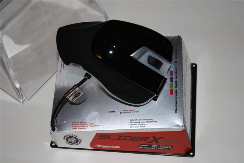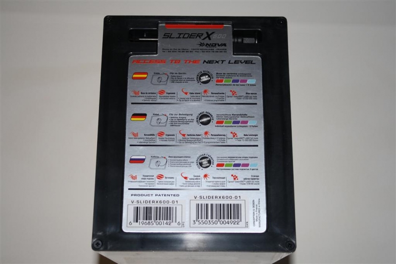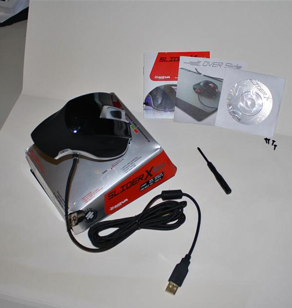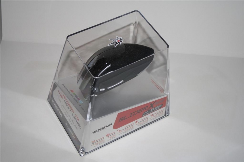 La confezione dell’ X600 Slider è davvero originale e particolare, il mouse stesso è chiaramente visibile in cima a un piedistallo di plastica nera. Intorno alla base sono elencate le caratteristiche e il logo "Slider X" in primo piano.