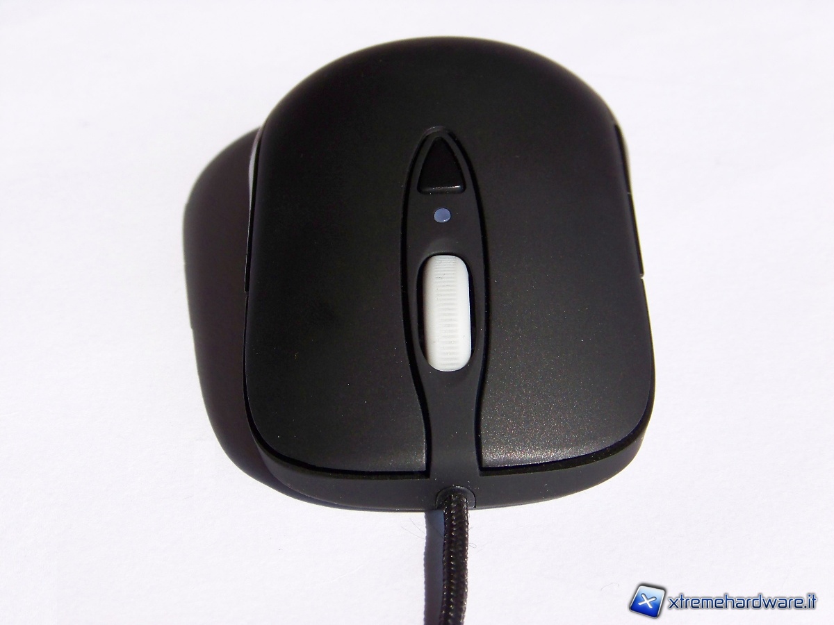 La parte superiore del mouse è caratterizzata dai due tasti principali, dallo scroll e dal tasto CPI che permette di aumentare in maniera veloce la sensibilità del mouse, portandola fino a 5001CPI; un led indica quando questa funzione è attivata.
