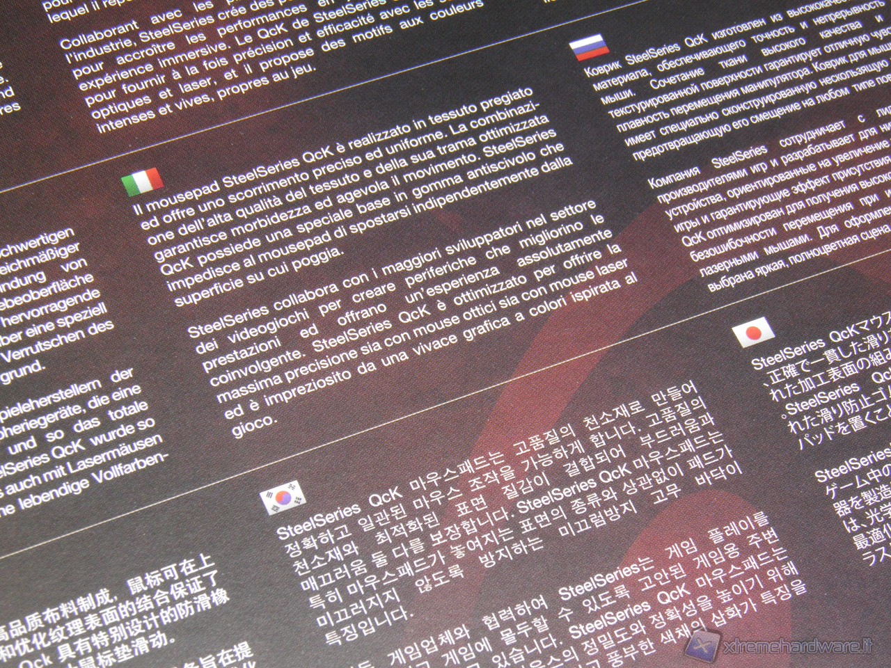 All'interno di ogni confezione è poi presente un opuscolo illustrativo e un adesivo SteelSeries .