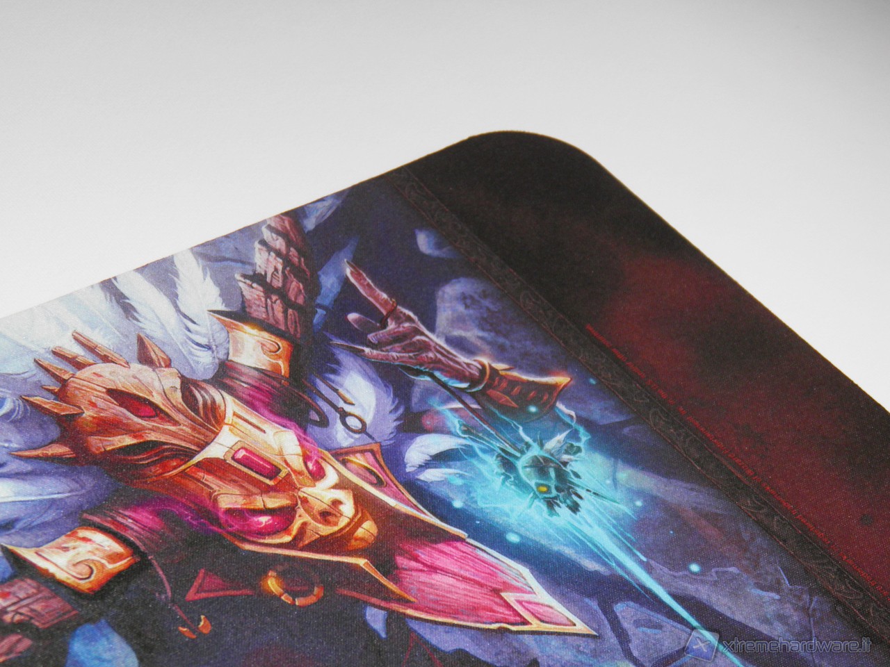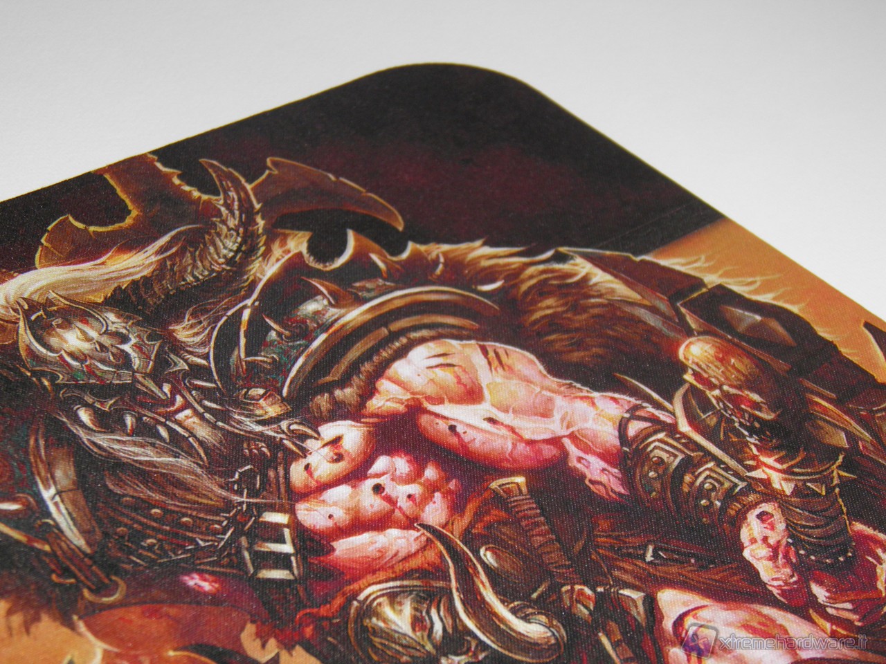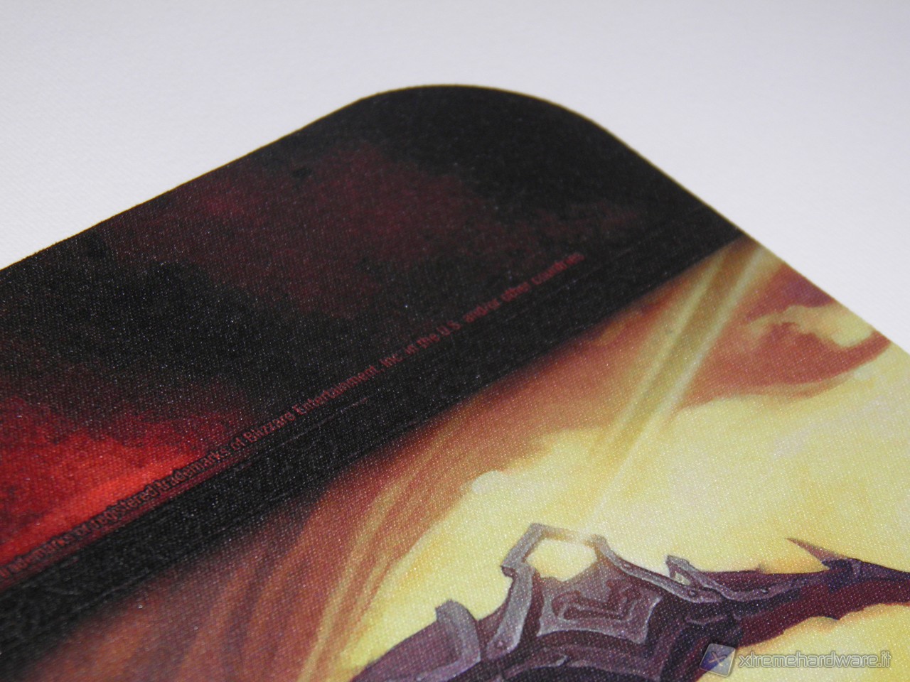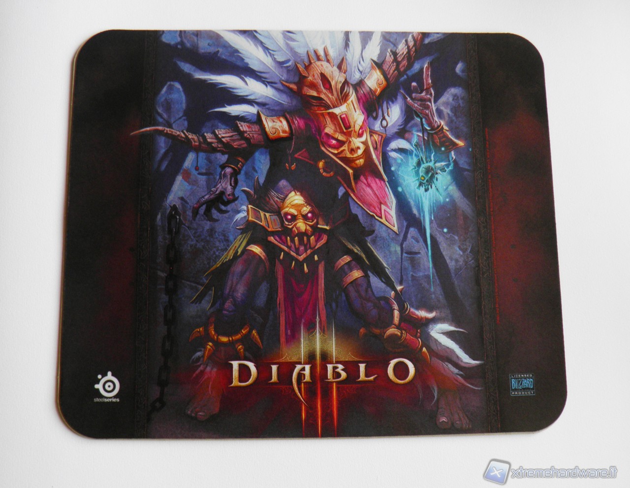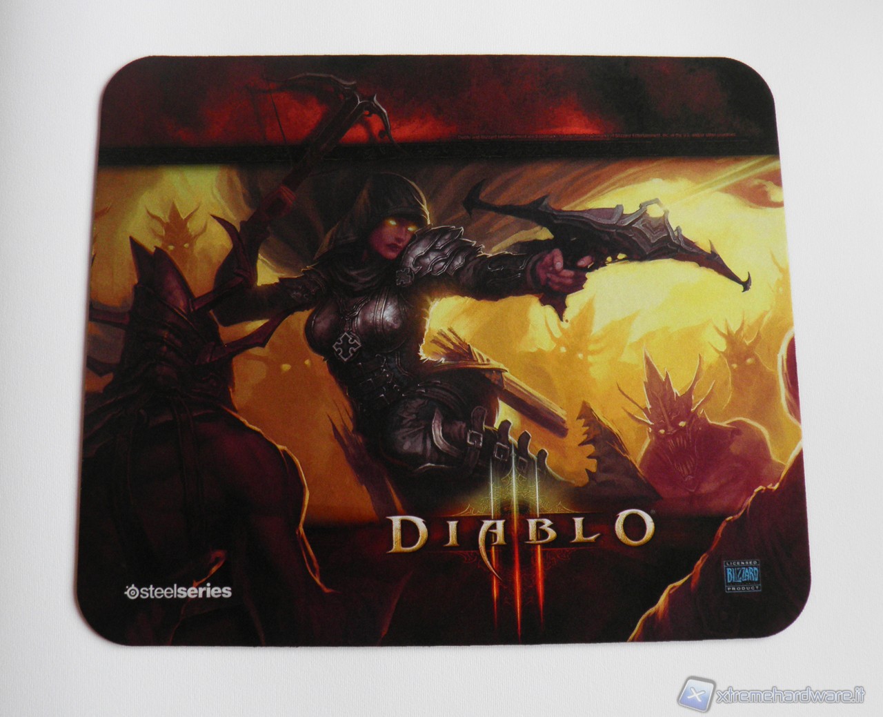 Il primo raffigura il logo di Diablo III. La trama del tessuto di questi mousepad, che costituisce la superficie di scorrimento degli stessi, è molto fine. Questo garantisce un'ottima scorrevolezza del mouse sul tappetino, l'attrito è davvero molto basso rispetto ad altri prodotti dello stesso tipo. Il tessuto della superficie è uguale per tutti e 5 i prodotti di questa recensione.