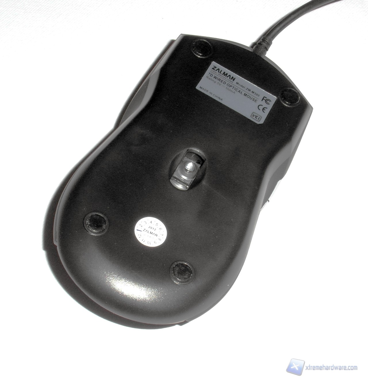 La parte inferiore del mouse tuttavia tradisce l'aspetto superiore, qui il mouse si presenta decisamente economico, i mouse feet sono di dimensioni davvero ridotte e probabilmente non in teflon, mentre al centro si intravede il sensore Avago 5050. Questa parte ricorda fortemente i mouse da supermercato.