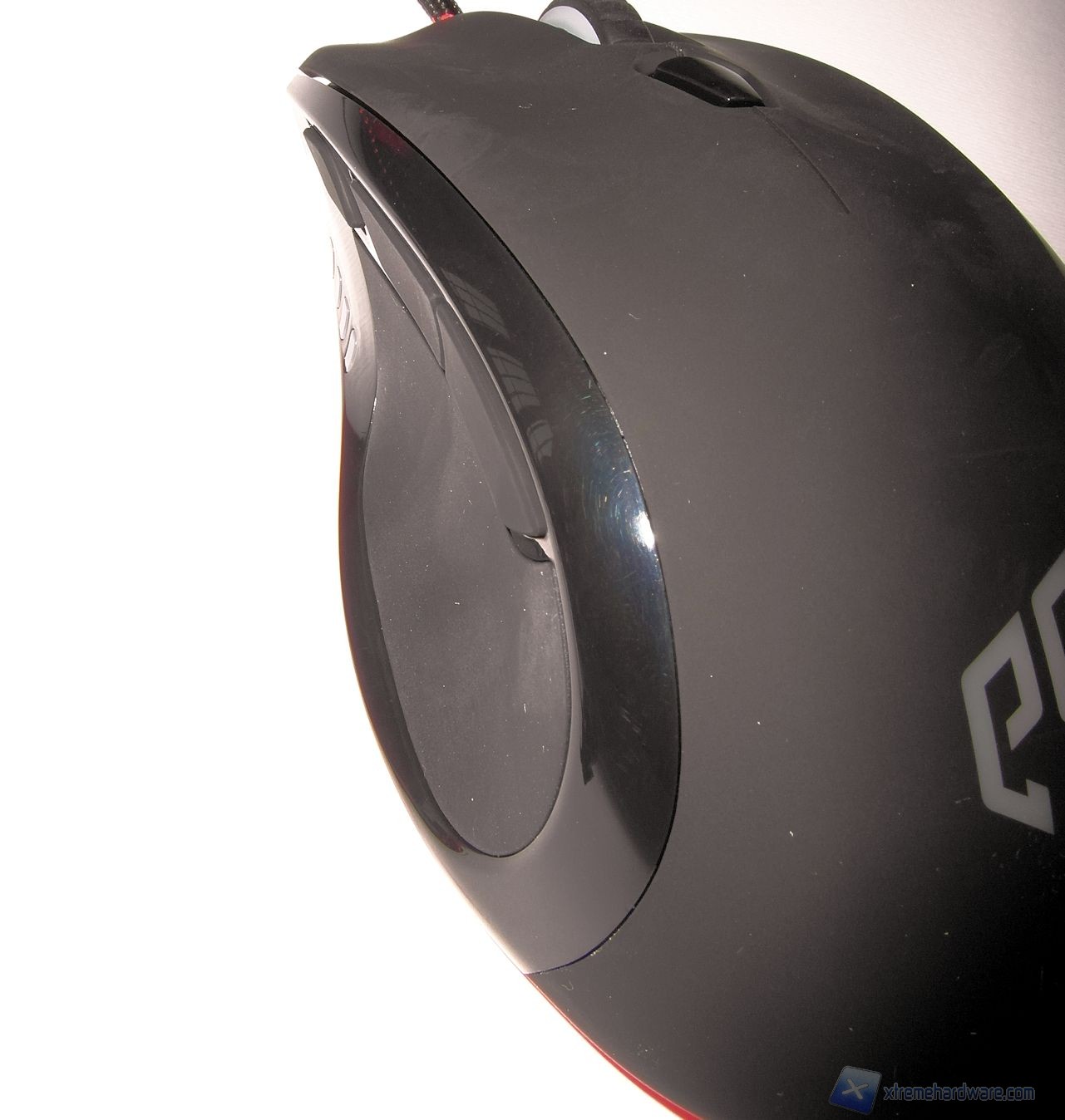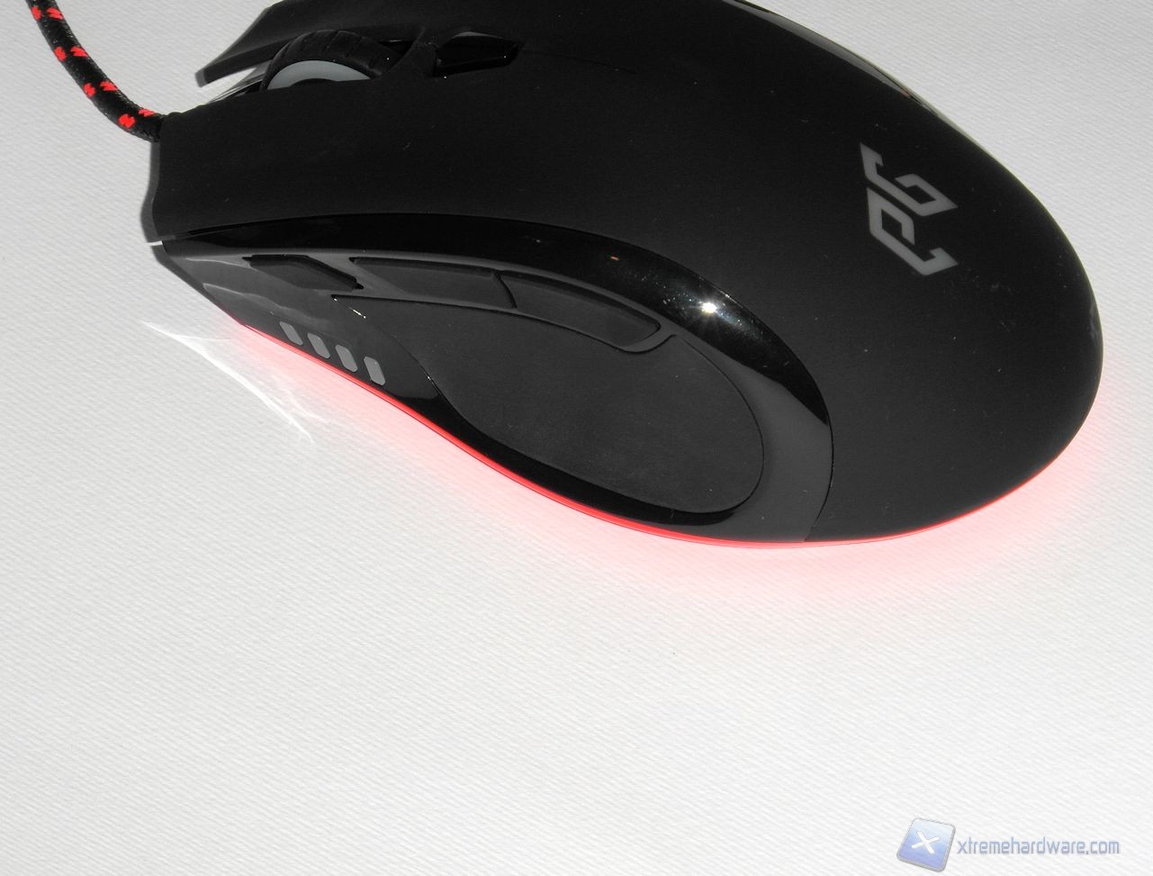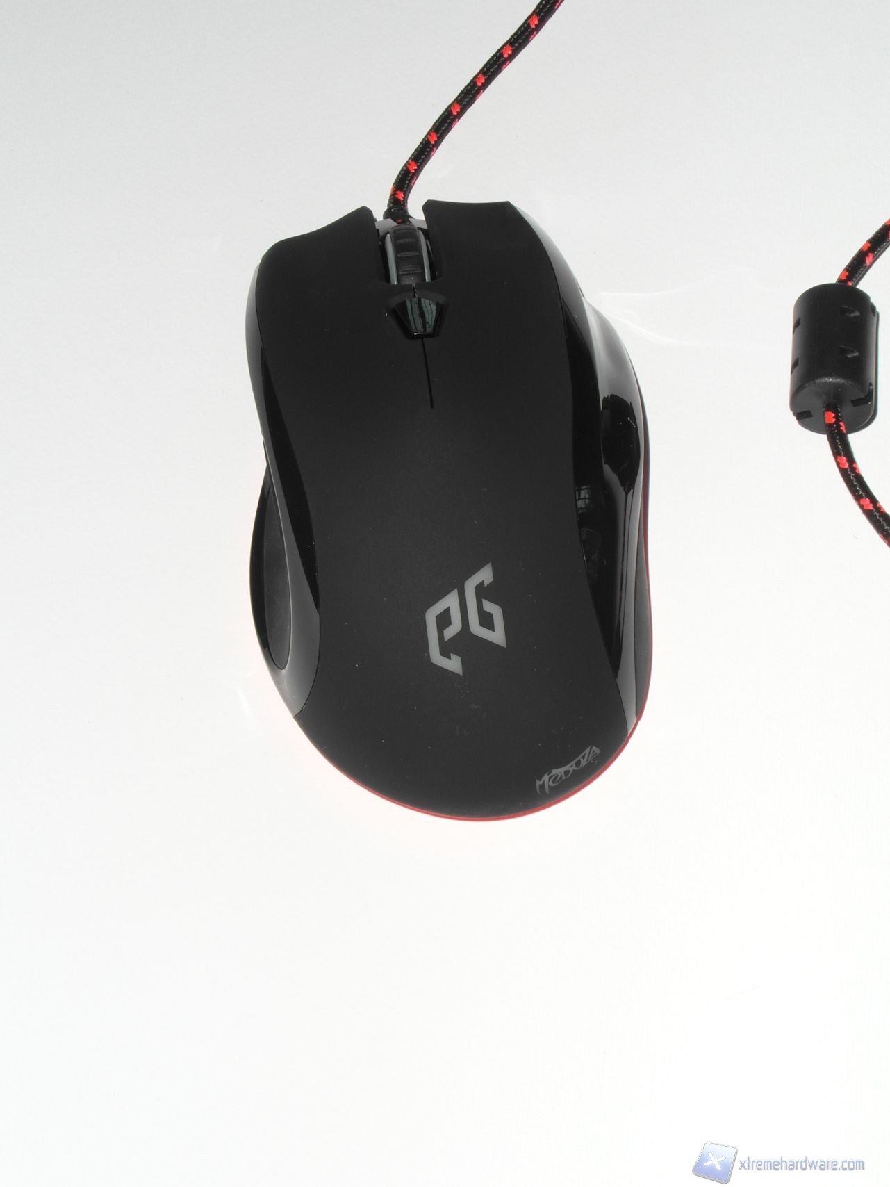 Il lato superiore è realizzato in plastica gommata (soft-touch) per ridurre la sudorazione e migliorare il grip. Possiamo osservare nella parte centrale un pulsante dedicato al controllo della risoluzione del sensore mentre, poco più avanti, è presente lo scroll caratterizzato da un profilo dentellato. Esso offre un'ottima sensazione sotto al dito, il feedback offerto in fase di rotazione è buono, tuttavia gli scatti sono abbastanza ravvicinati; il risultato è comunque decisamente sufficiente a garantire una buona efficacia in gioco.