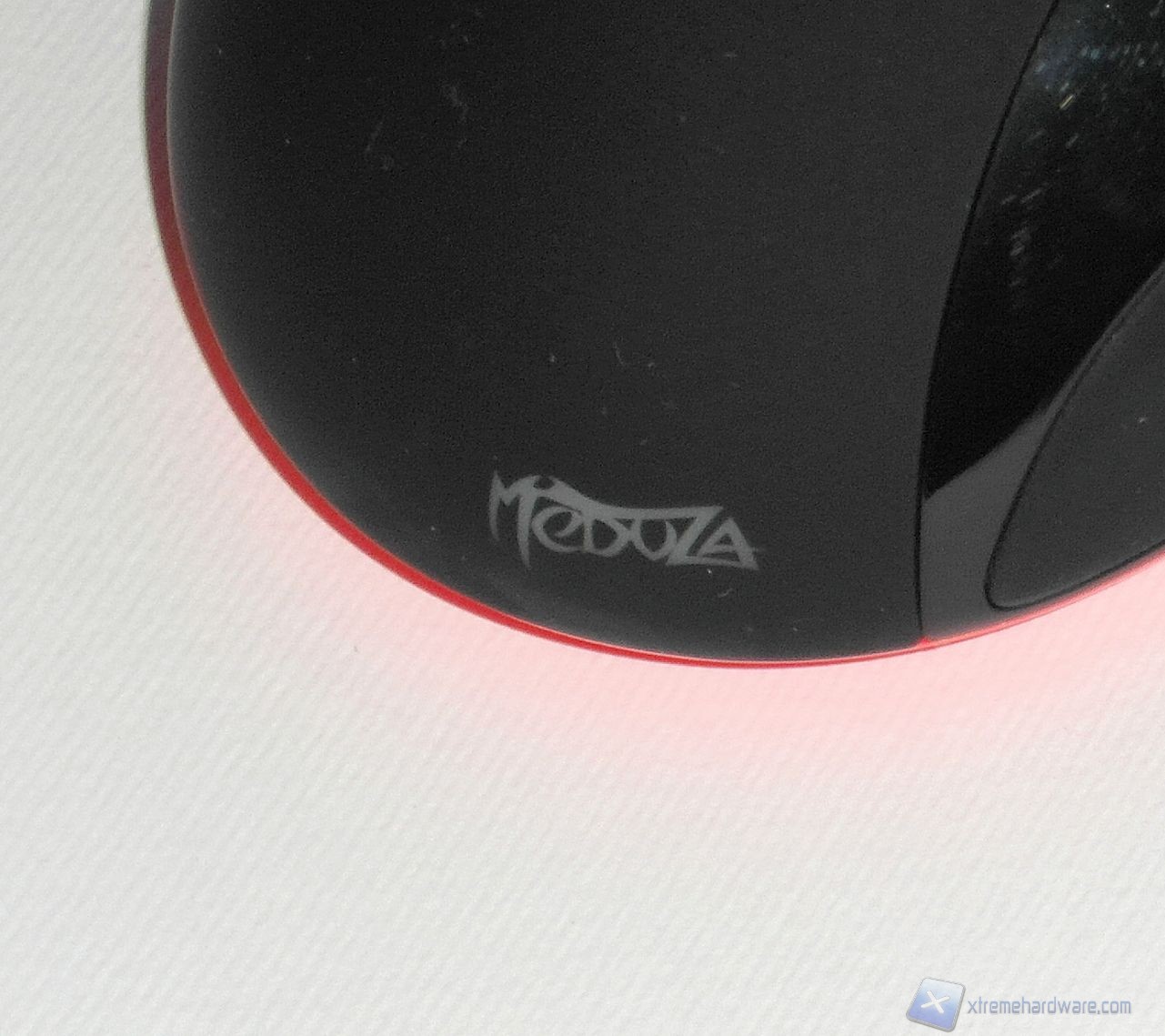 Il dorso del mouse presenta nella parte posteriore il logo di EpicGear, mentre in basso è presente la scritta Meduza. Visto posteriormente possiamo anche osservare meglio i profili laterali asimmetrici del mouse. Nella parte sinistra è presente la rientranza per il pollice, mentre a destra si nota il profilo che dovrebbe garantire un buon appoggio per anulare e mignolo.
