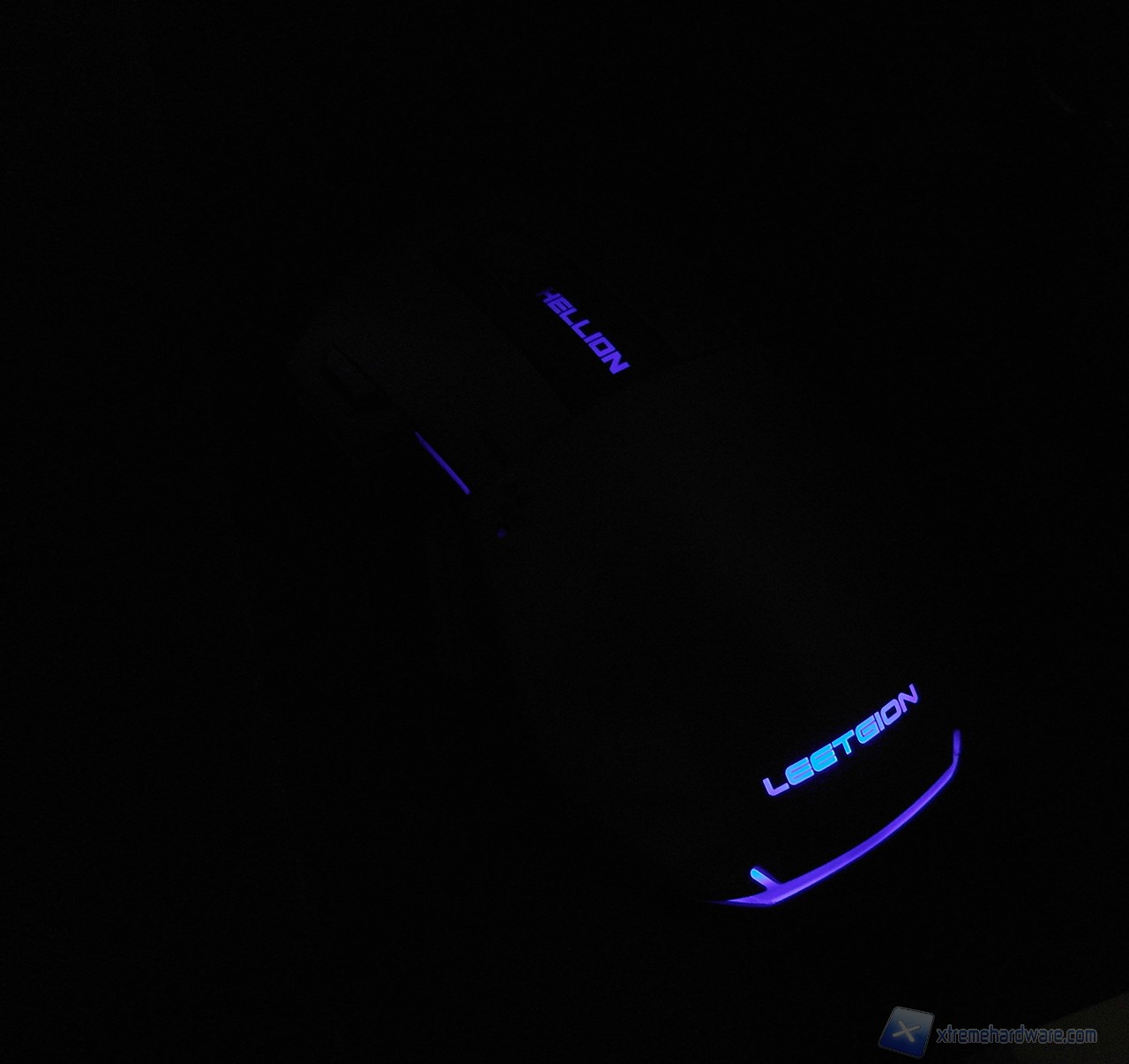 Al buio l'illuminazione dell'Hellion si fa notare “accendendo” le scritte Leetgion ed Hellion, la barra posteriore e l'intercapedine tra pulsanti e corpo del mouse.
