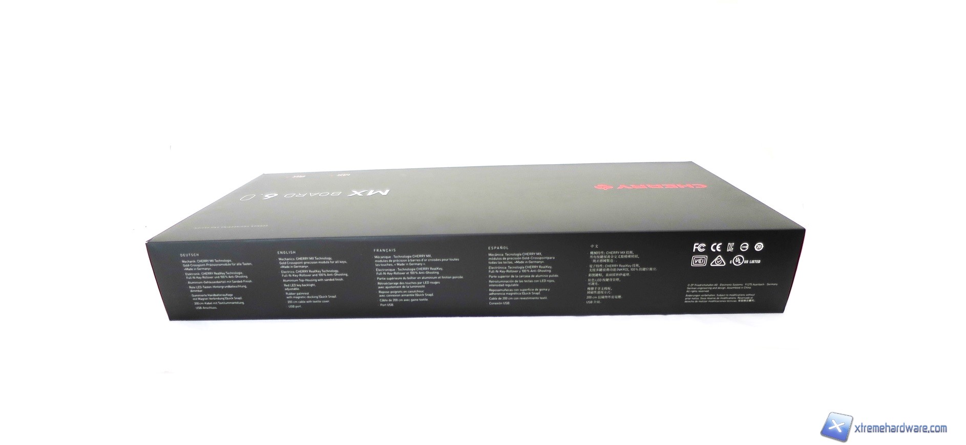 La Cherry MX Board 6.0 giungerà in una confezione di cartone di colore nero che conferisce a prima vista un prodotto elegante e di qualità. La confezione riporta tutte le informazioni e riferimenti necessari ad identificare e comprendere le caratteristiche del prodotto in essa contenuto.