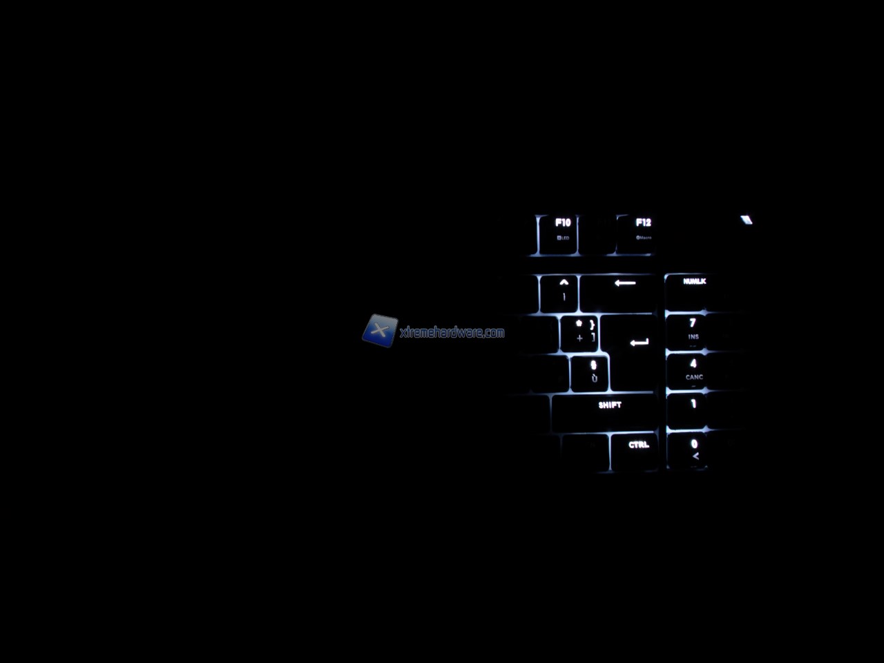 Procediamo passando alla zona relativa al tastierino numerico aka Numpad. In questa zona troveremo nella parte alta i LED relativi a Num, Scroll, Caps Lock mentre la zona inferiore e relativa ai tasti sarà caratterizzata dai primi tasti a duplice funzione che ci permetteranno di sfruttare i Tasti Multimediali o i tasti per regolare la velocità della retroilluminazione, in caso di effetti particolari, o a quelli di ciclo alternativo sempre relativi ai LED e retroilluminazione.